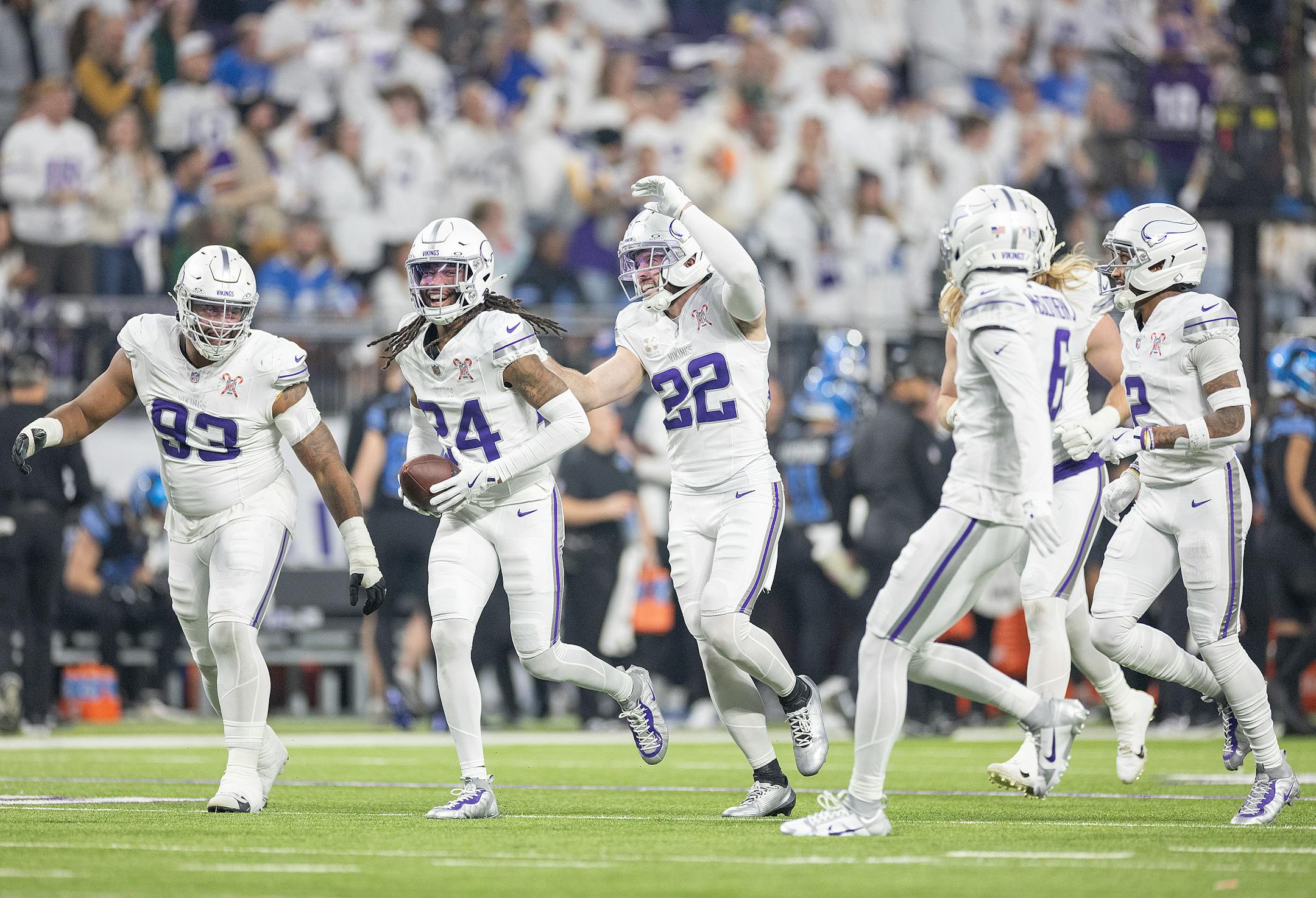 The Vikings defense catapulted back to just inside the NFL’s top 10 in turnovers this season with a standout performance against the Lions. Safeties Harrison Smith and Josh Metellus are tied with cornerback Byron Murphy Jr. to lead the group in interceptions this season with two apiece.