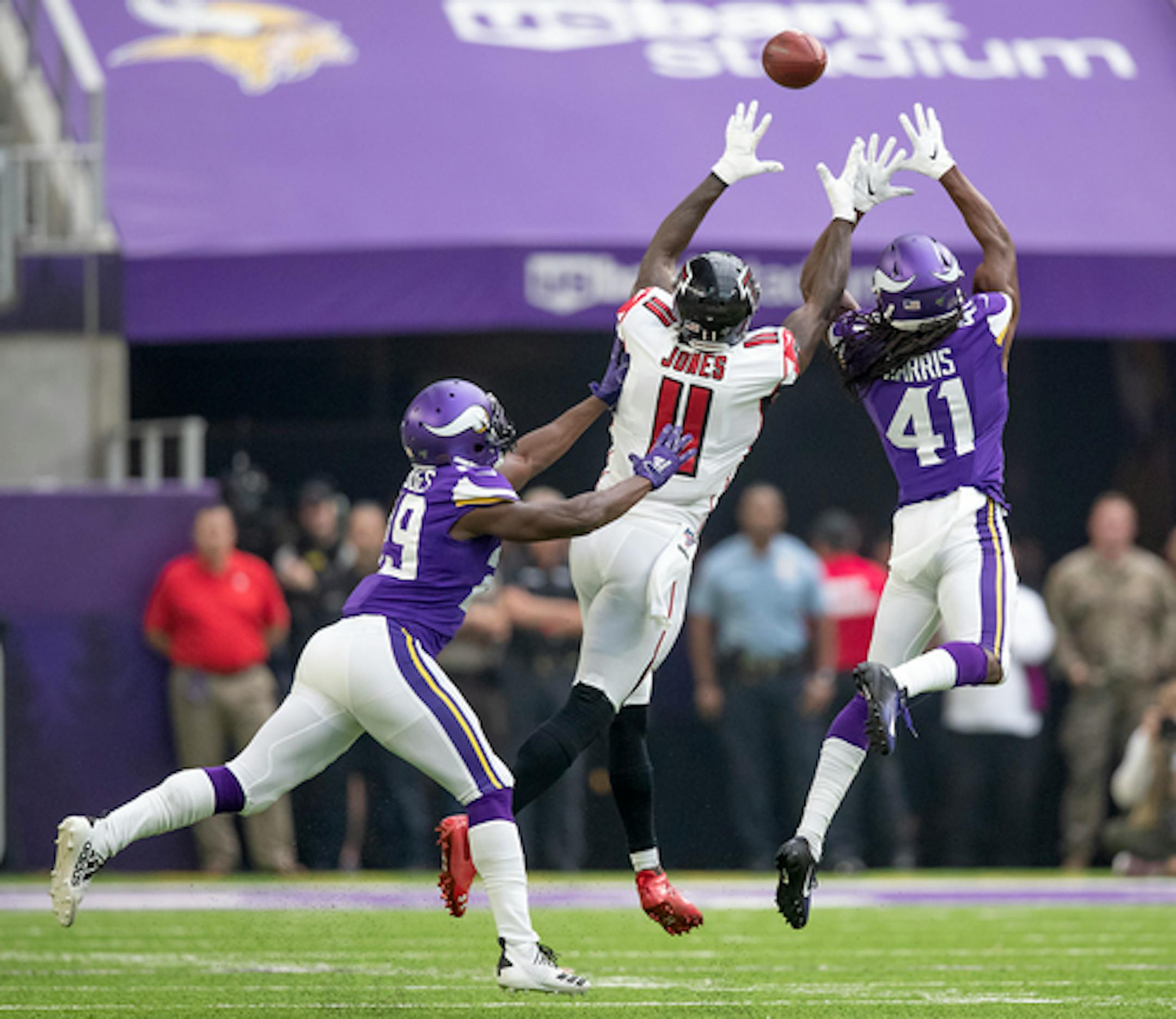 Harris, the fifth-year Vikings safety, was named NFC Defensive Player of the Week after twice intercepting Falcons quarterback Matt Ryan and recovering a fumble during Sunday's 28-12 win.