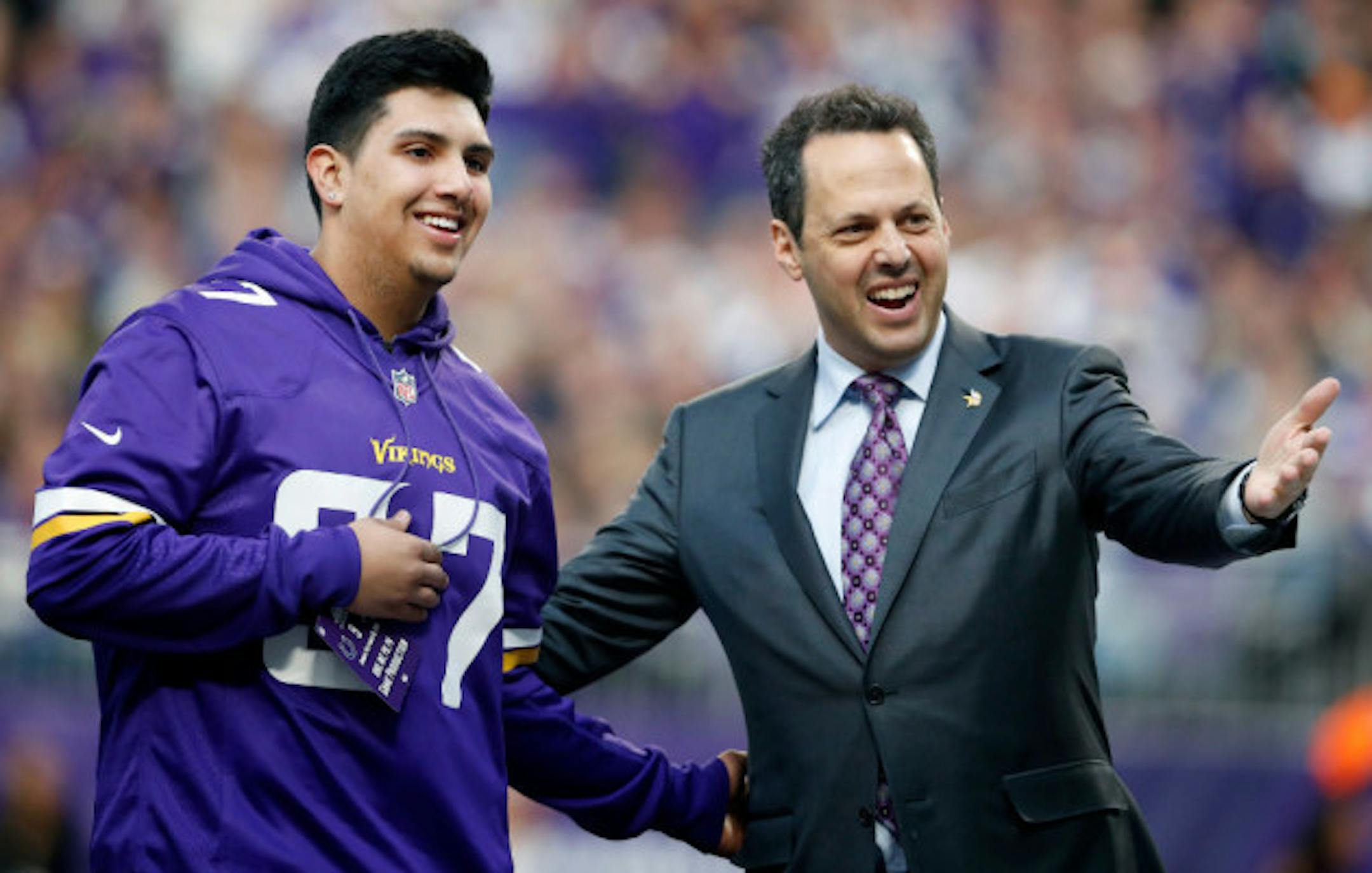 The Vikings surprised Sam Heras with a new car for his 18th birthday Sunday at U.S. Bank Stadium.