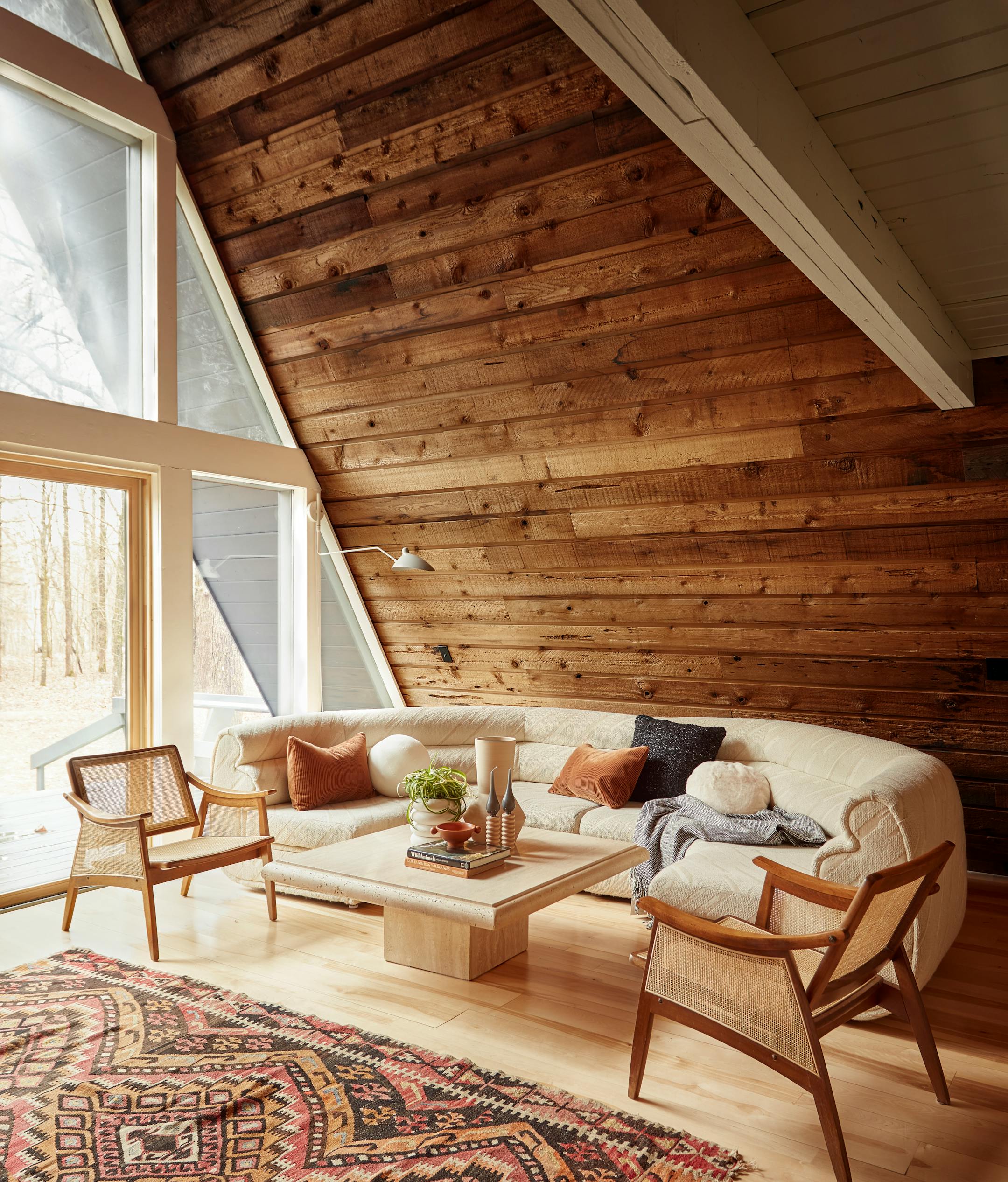 The smell of pine trees, the sparkle of water and the call of a loon all signal a weekend getaway in north country. Indoor spaces matter, too. Any cabin, new or old, will feel true to its Minnesota roots with the right decorative finds. The vintage and retro pieces shown here add a touch of coziness and bold style to this inviting A-frame.