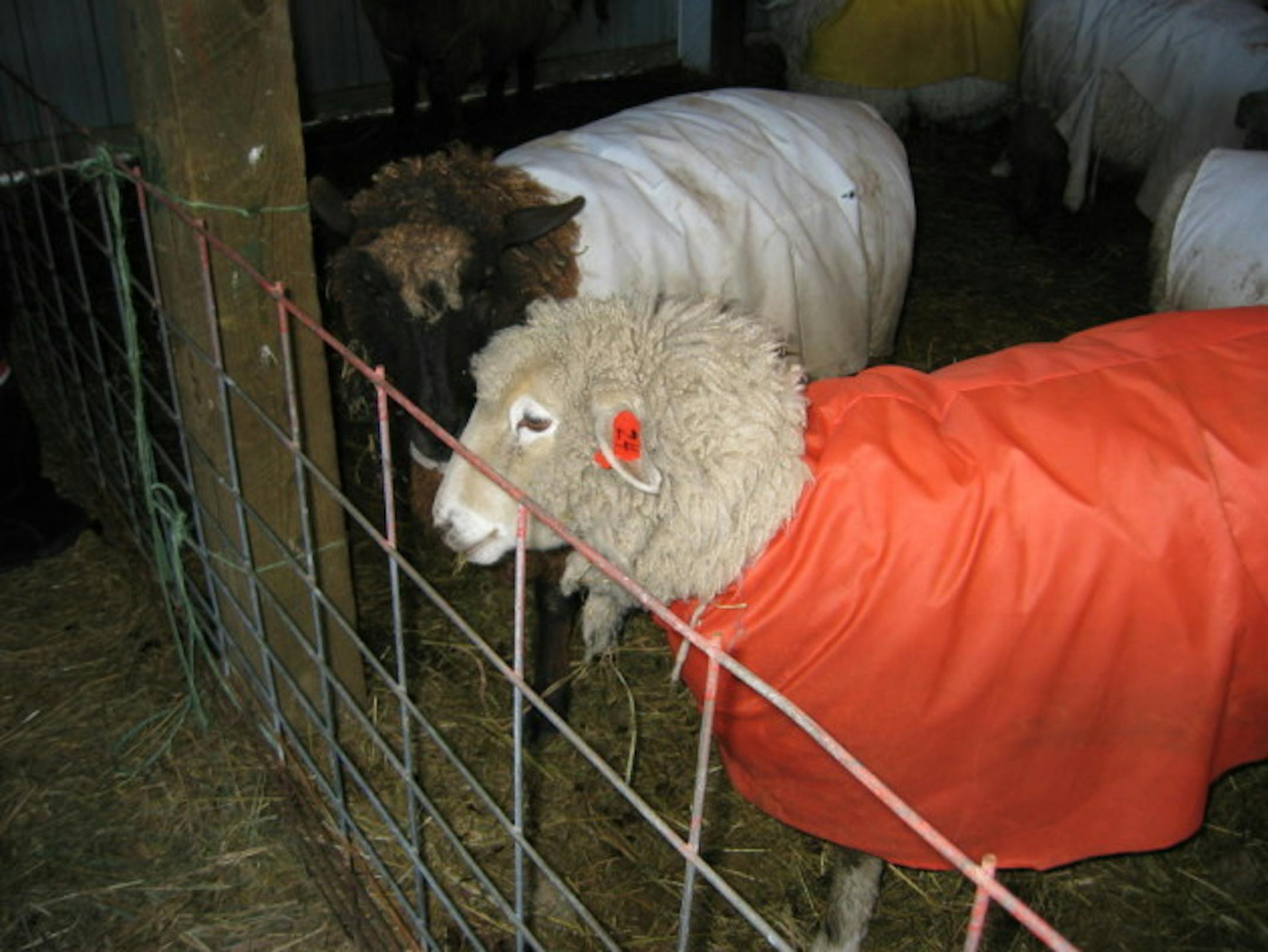 carefully piled on top of the truck's cab and the sheep were happily smiling at those of us staring back at them.