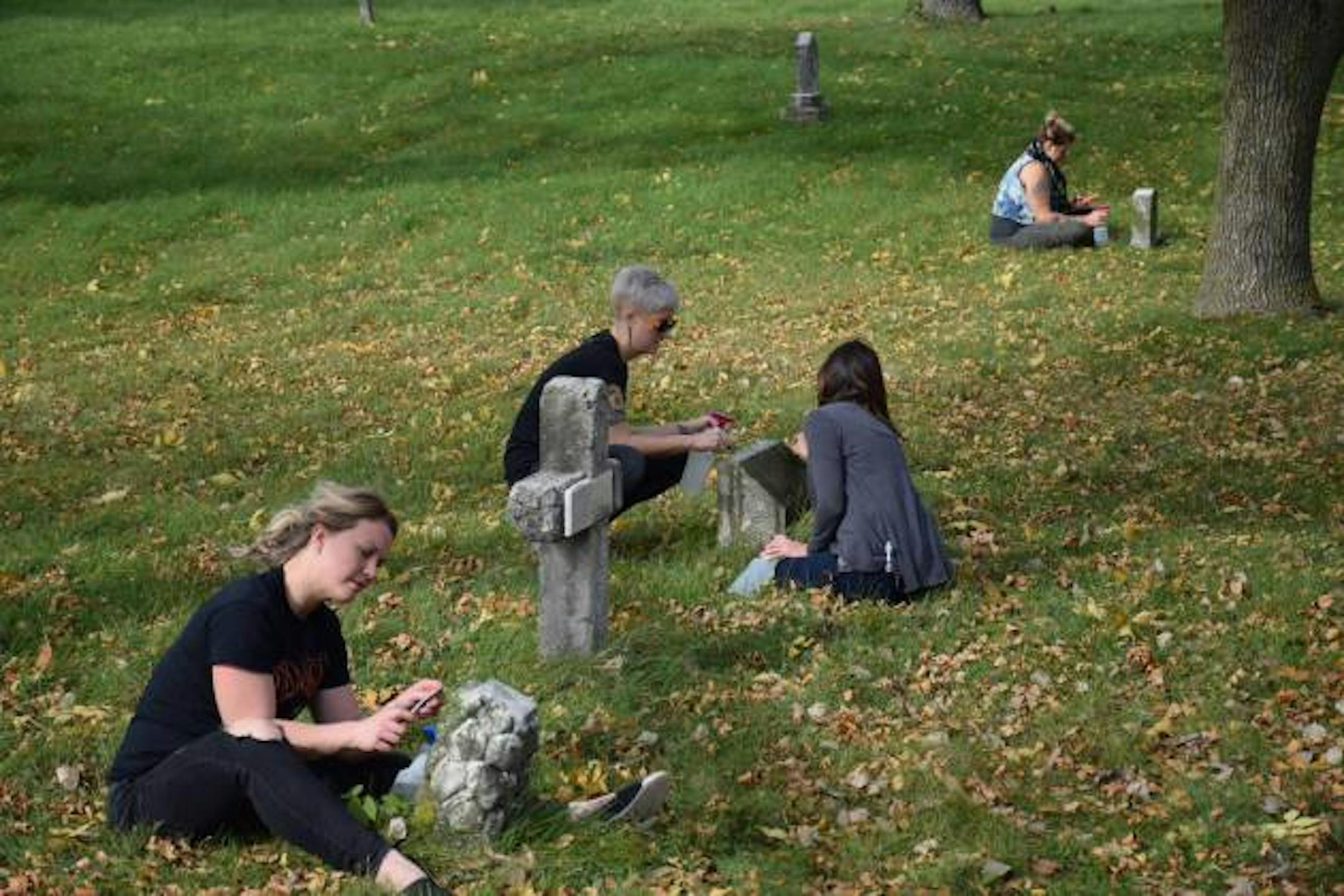 A group called Creepy Girl Travels, which highlights alternative destinations for counterculture travelers, brought together about 15 people on Saturday for a "Gravestone Cleaning and Picnic" at Pioneers and Soldiers Memorial Cemetery off Lake Street near Cedar Avenue.