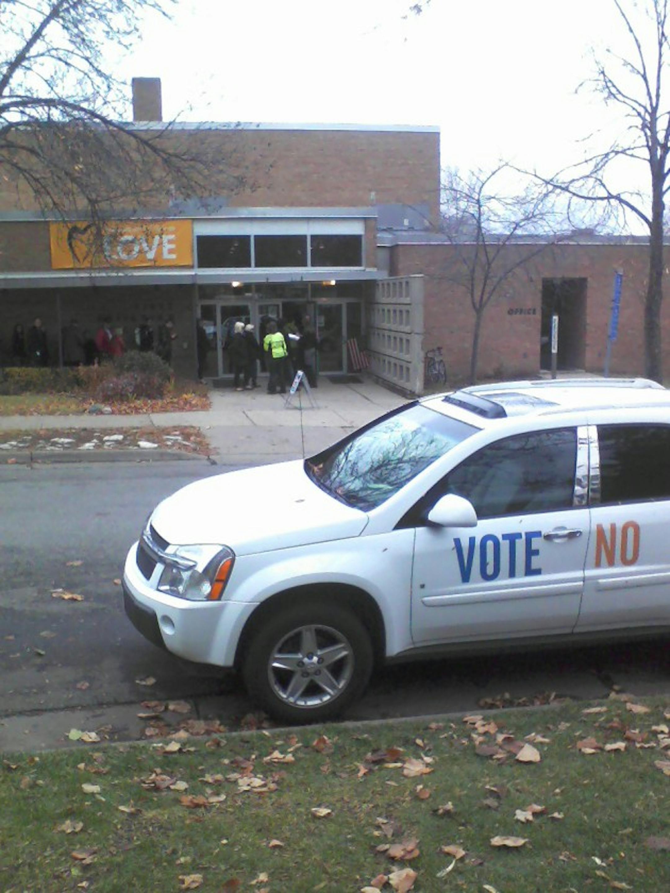 Voter in Minneapolis was concerned about proximity to polling place; church official says that's not their van.