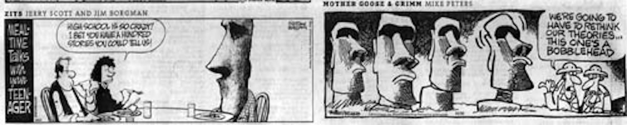 COMICS This has to be the first time this has ever happened: in today's Strib Variety section, simultaneous side-by-side Easter Island references.