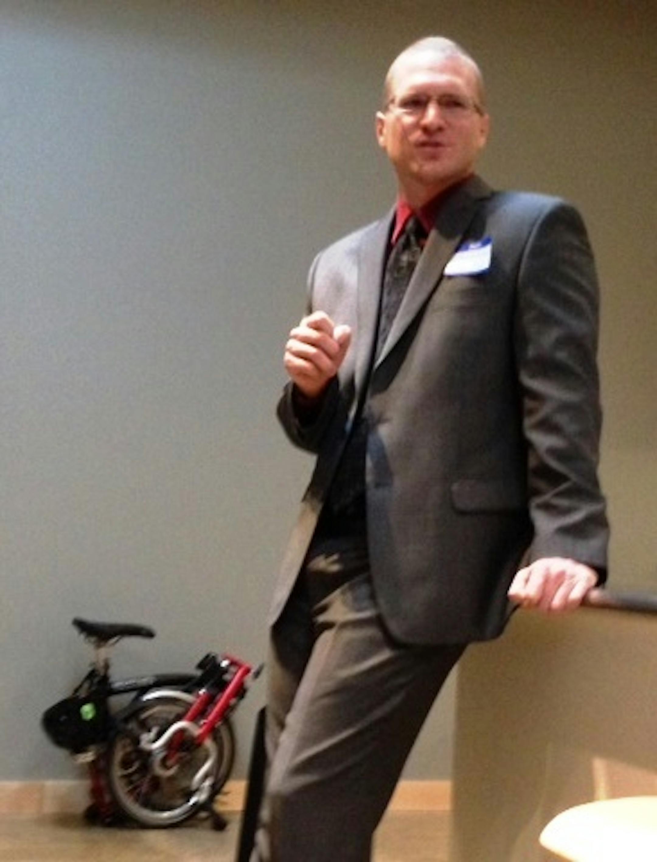 It was subtle reminder that a winter commuter can dress for work, yet commute without hands on a steering wheel. Dyrdahl took a bus and then biked from his northeast Minneapolis home to the event in Whittier.