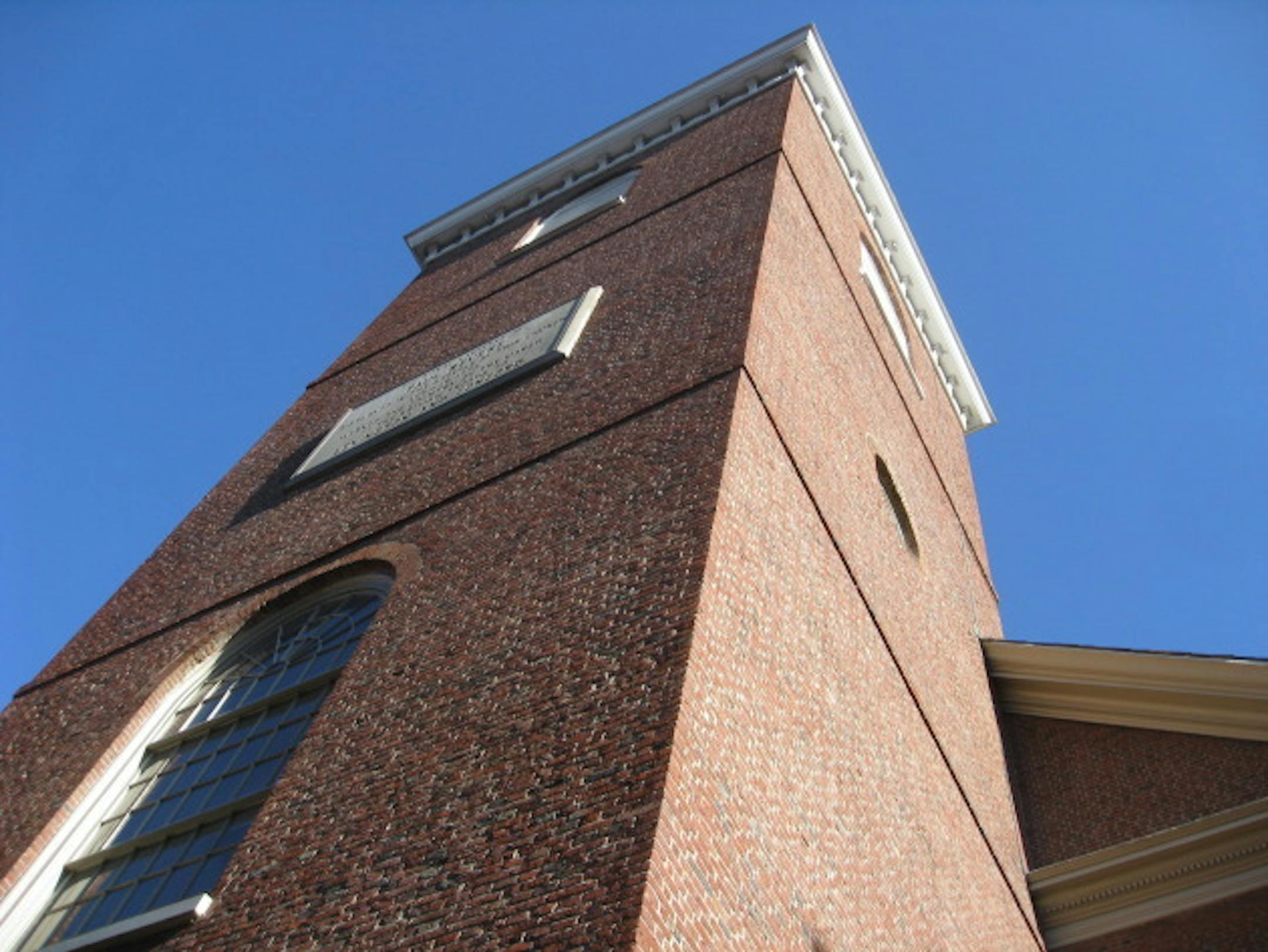 Outside his church, I met a couple guys playing cribbage in an espresso bar with Martha Stewart blaring on the TV. I lunched on some great Sicilian Eggplant Parmesan at the Florentine Cafe near an old Italian church at 33 Hanover Street. Then I hopped on the Red Line train and wandered around Harvard, browsing the Harvard Coop bookstore before a burger and some beers at the Casablanca in Cambridge with Boston-area writer Bob Katz, whose novel "Third and Long' I reviewed a few years ago -- only to learn later our brothers are best friends. (Photos: Looking up the spiral stairs of the old Statehouse and the old North Church from where Paul Revere warned Bostonians about the redcoats)