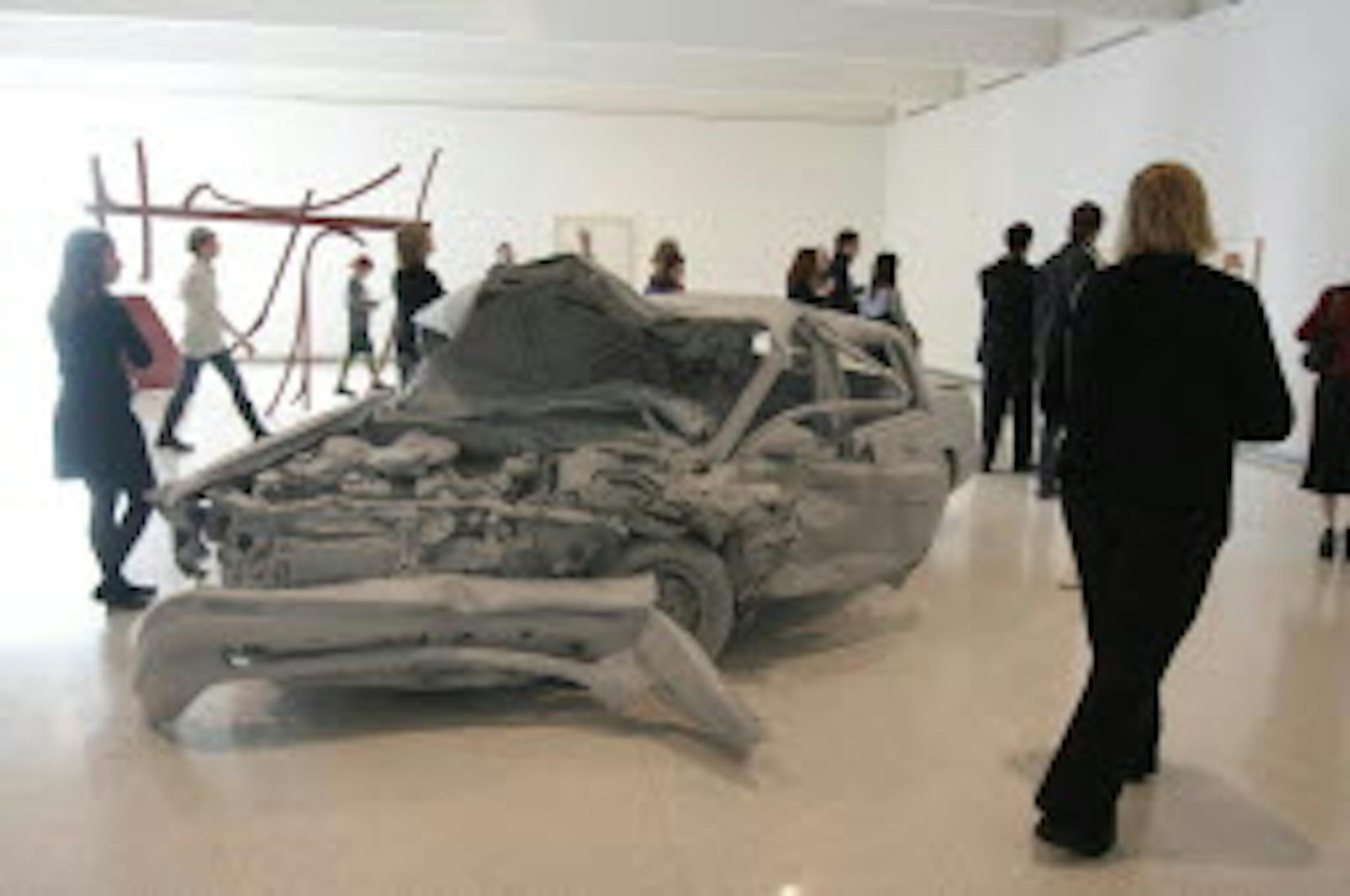 I for one enjoy a nice (concise) wall card, so I can learn the name of the artist responsible, and the date of its creation, or in the case of the piece pictured above, its collision.