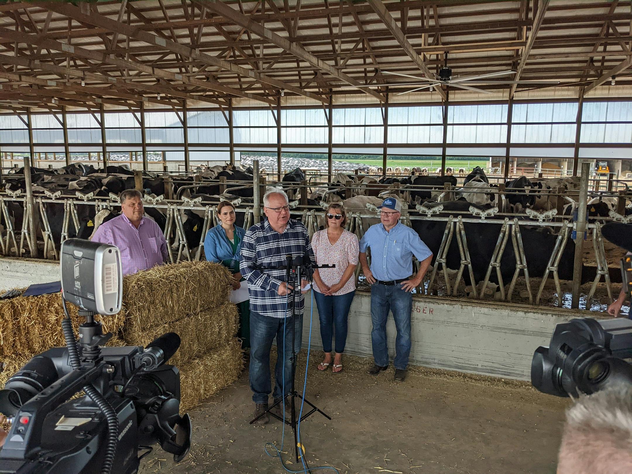 FOLEY, Minn. - As a couple hundred cows contentedly grazed on feed Thursday, occasionally letting out a gentle "moo" or two, Gov. Tim Walz lauded the bipartisan cooperation that led to the passing of the agriculture bill in May.