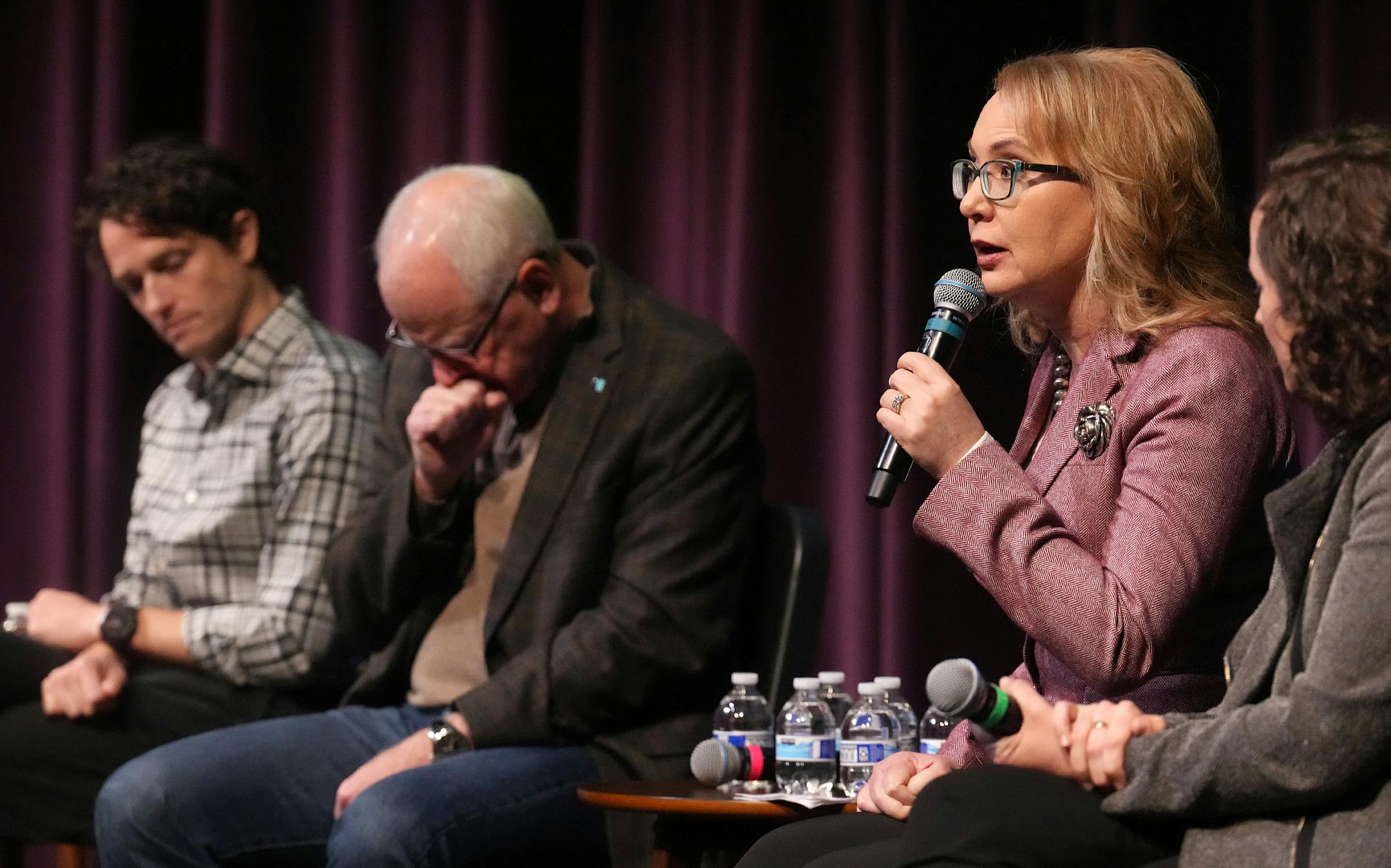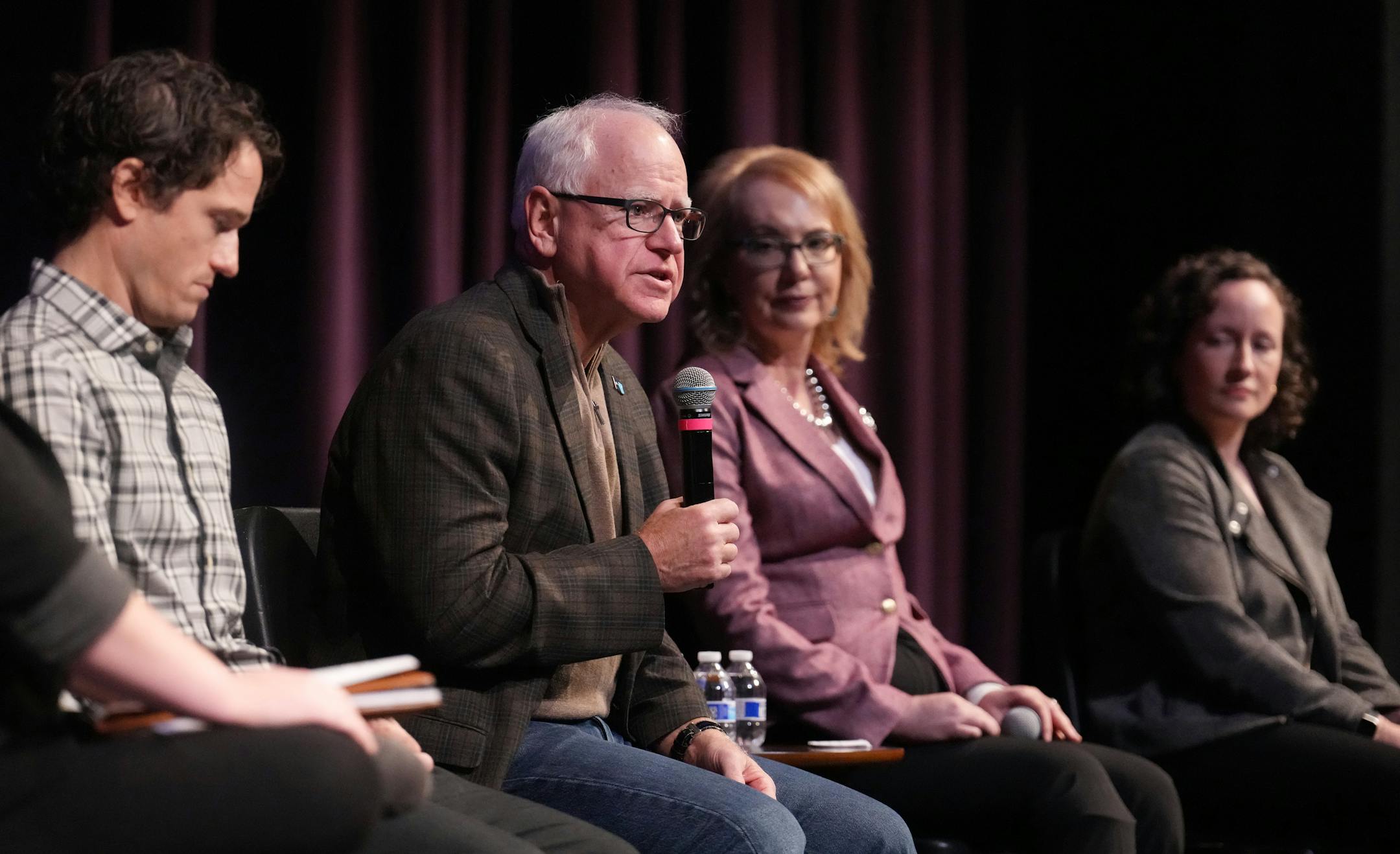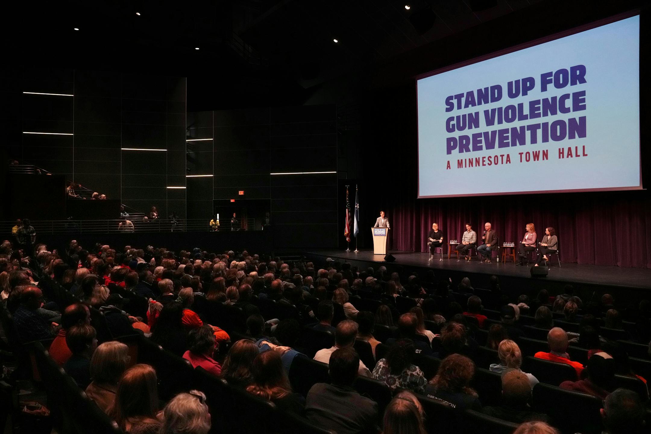 Gov. Tim Walz and several legislators appeared at the ticketed town hall at Waconia High School, bringing the discussion about guns out of the State Capitol and into the community after lawmakers reached an impasse in negotiations. More than 800 attended the event.