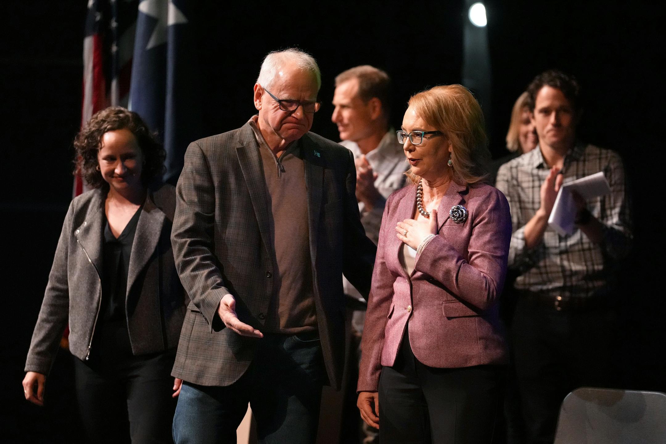 Walz was joined on stage by former U.S. Rep. Gabby Giffords, an Arizona representative who retired from Congress after surviving a gunshot to the head in an attempted assassination in 2011. In the years since, she has become a leading advocate for gun safety legislation. She urged the crowd to “never stop fighting” for change in Minnesota.