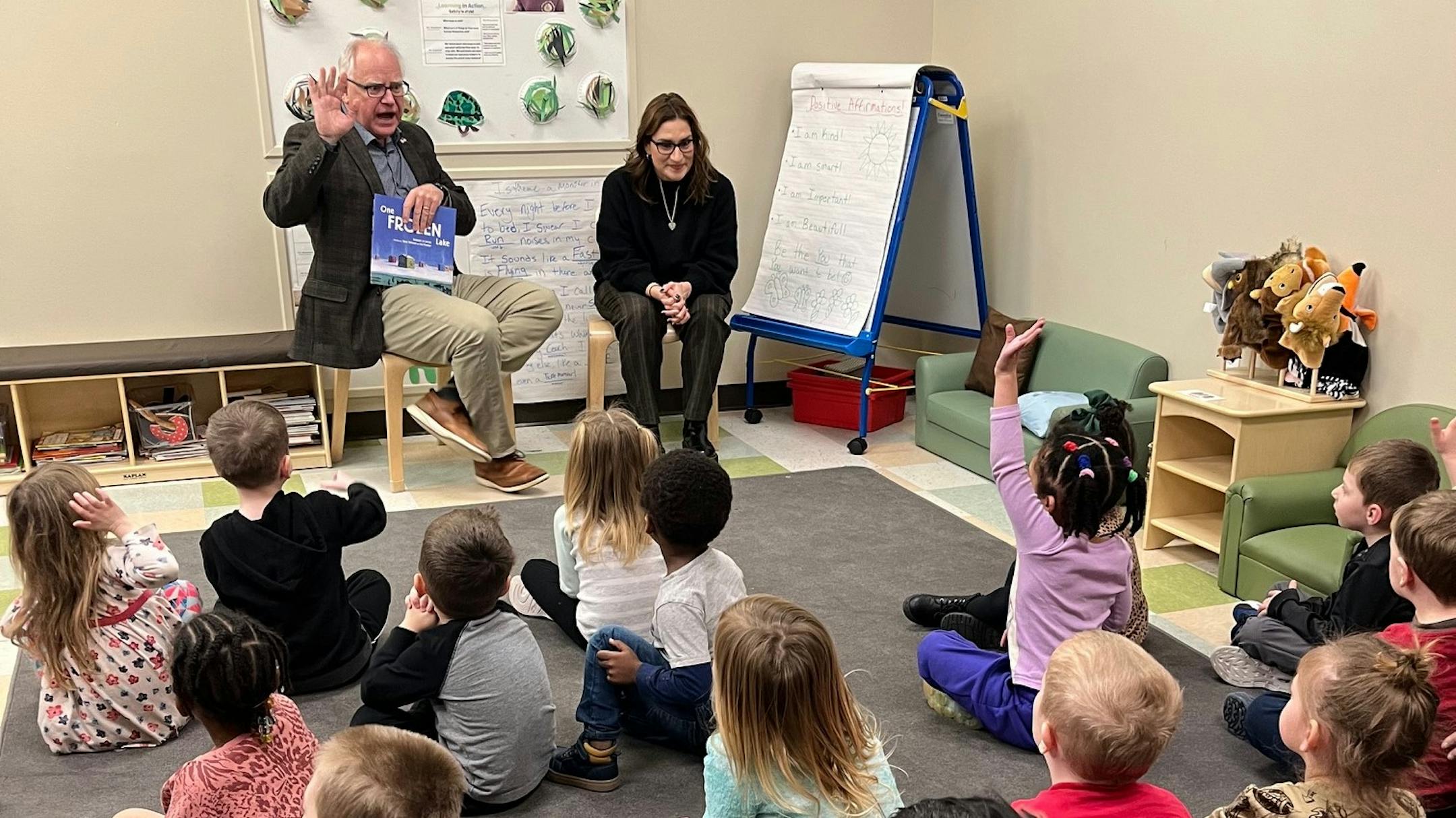 Walz and Lt. Gov. Peggy Flanagan read the book “One Frozen Lake” to a classroom of children before their media event. She later repeated what has been a theme of their administration.