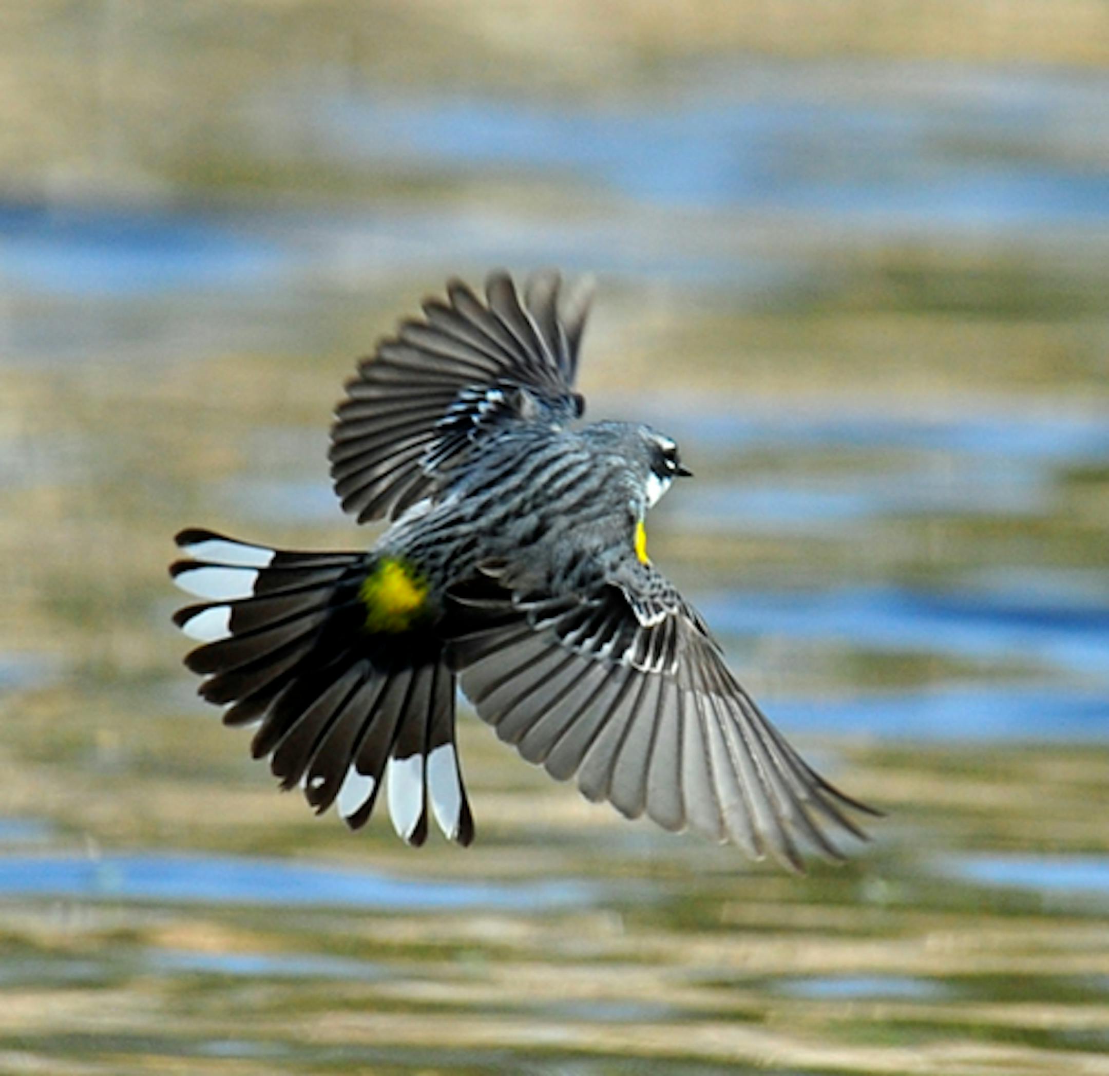 Below, a Yellow-rumped Warbler.