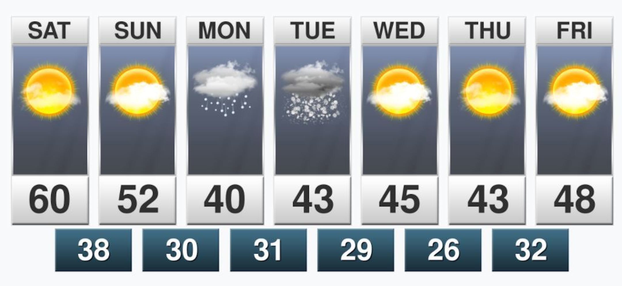 Saturday will be the pick day of the weekend with high temps approaching 60F in the metro, which will be nearly 20F above average. There will be plenty of sunshine as well, which will be as strong as the sunshine in late September around the Vernal Equinox.