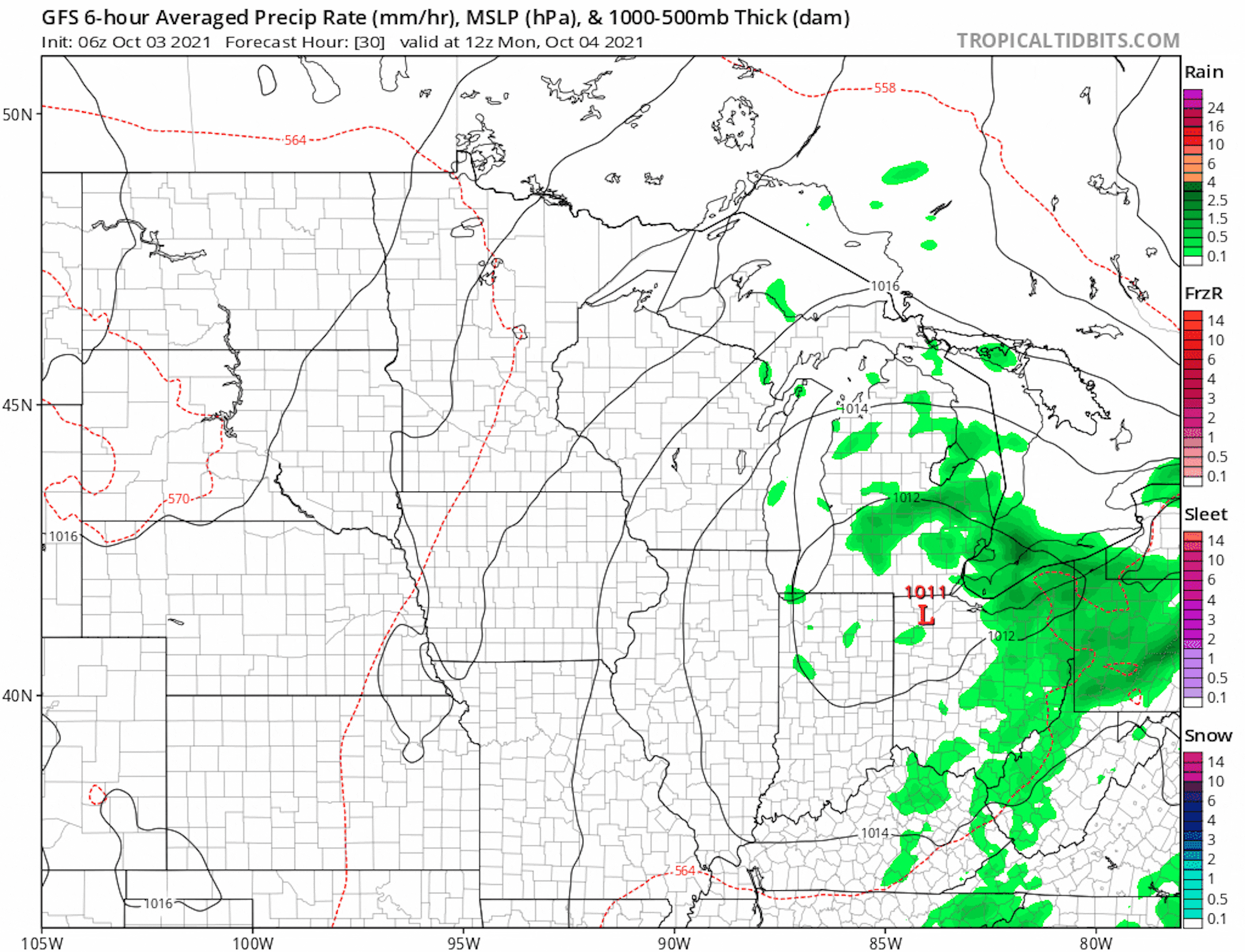 Simulated Radar From AM Monday to PM Friday