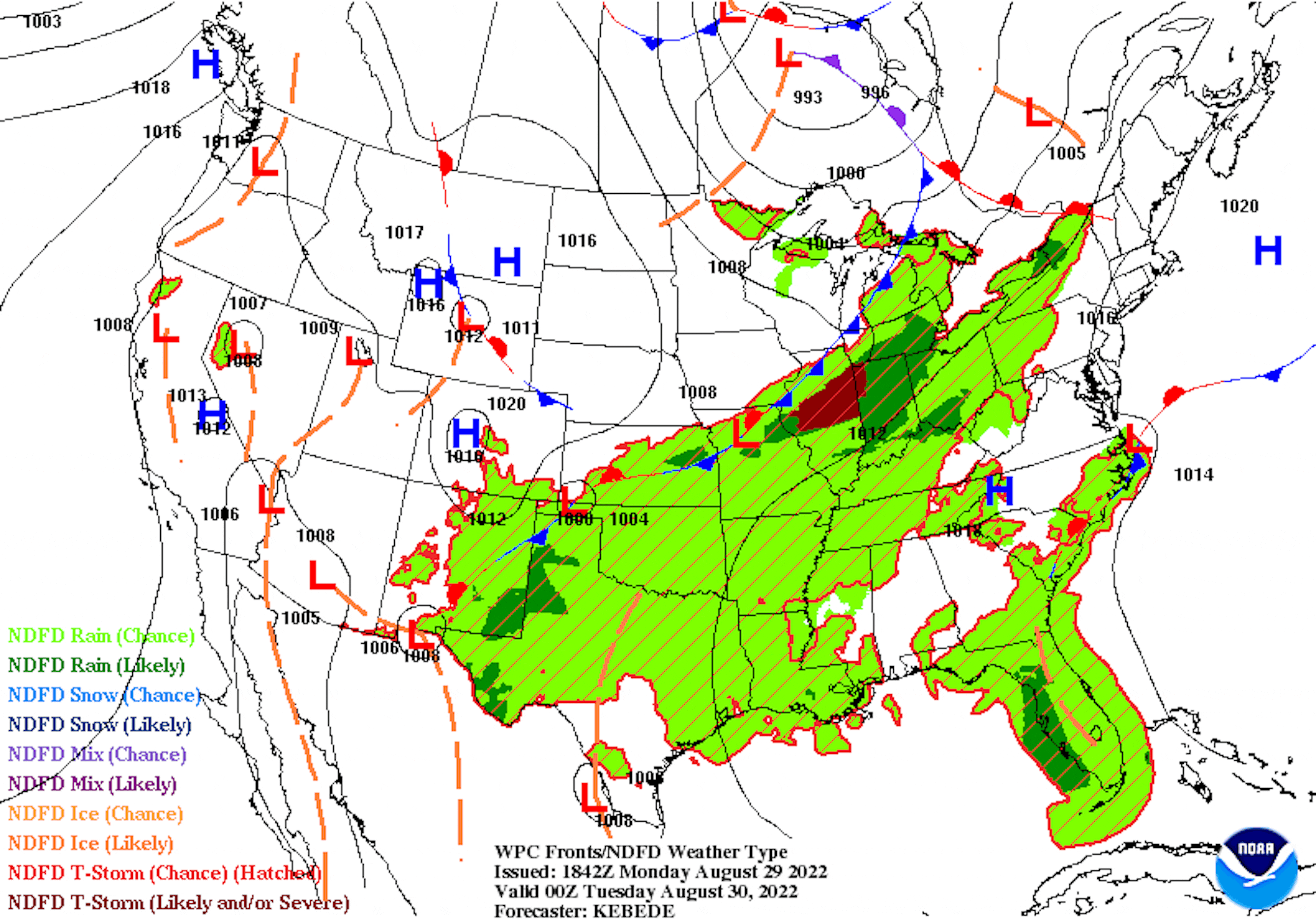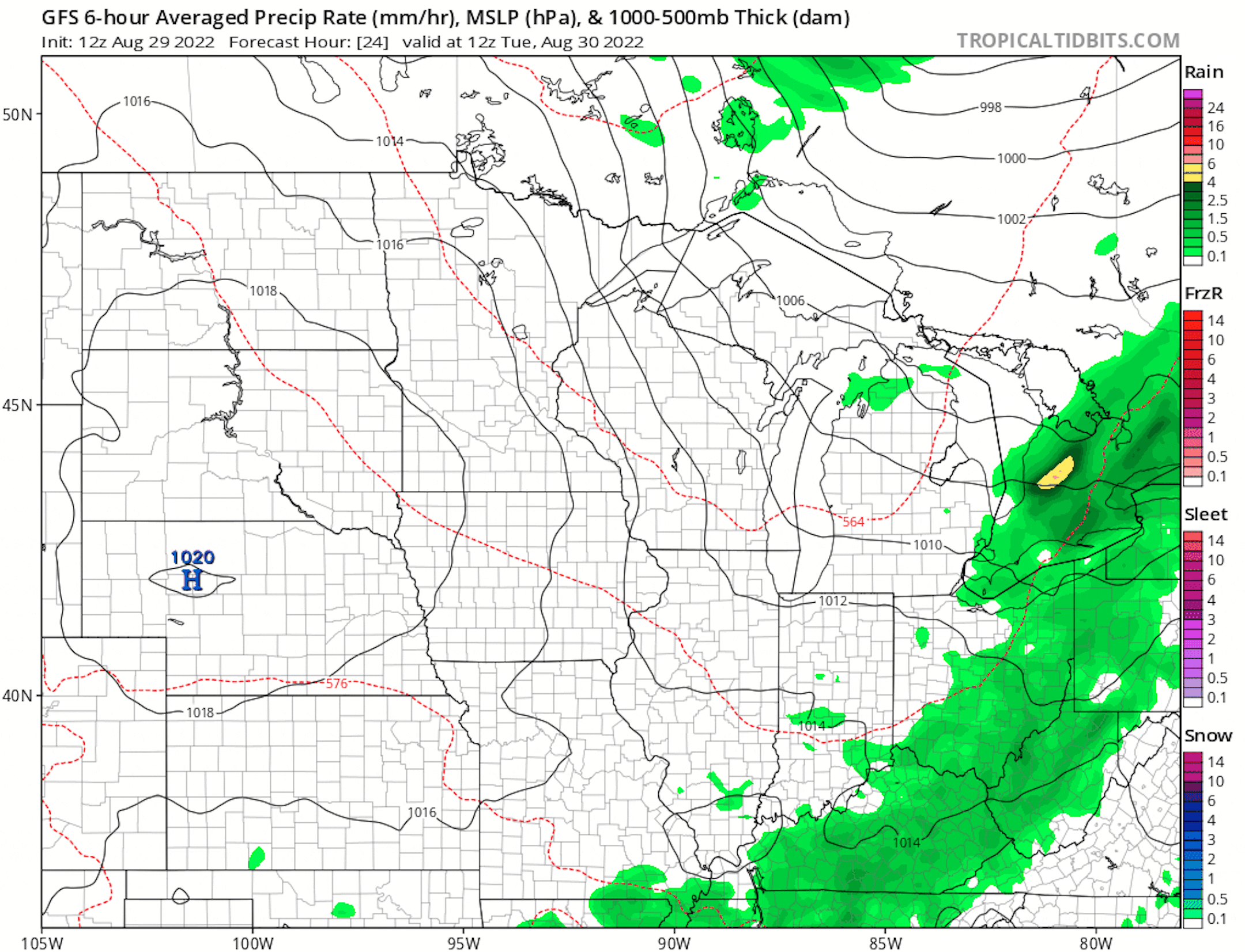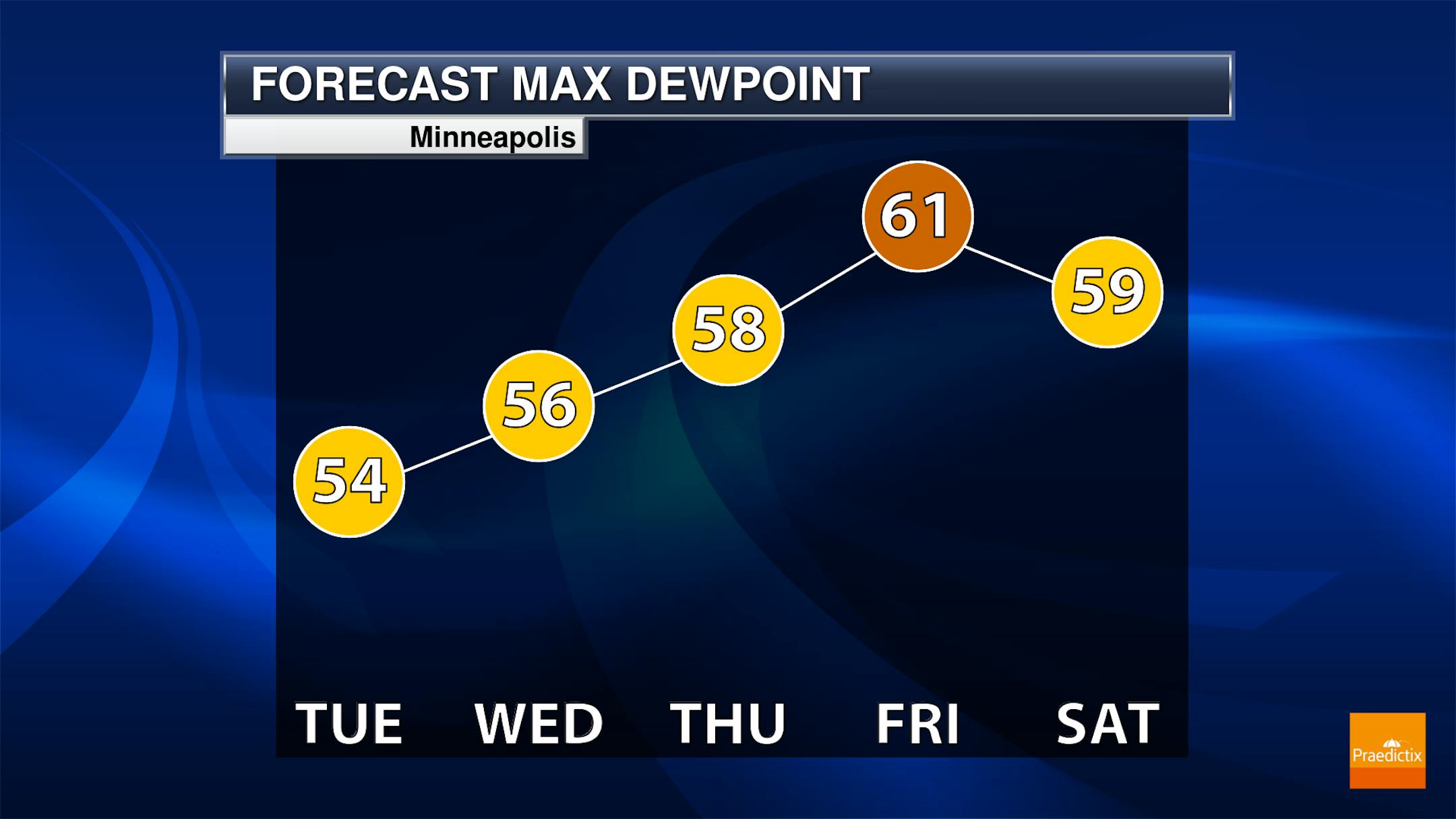 Here's the weather outlook from AM Tuesday to Labor Day Monday. Weather conditions will be quite dry across much of the region and a bubble of high pressure drifts through. Temps will be close to average through midweek, but will warm to well above average levels later in the week as the wind turns to the south. There is a slight chance of PM storms Friday, but the main threat will be south and east of the Twin Cities.