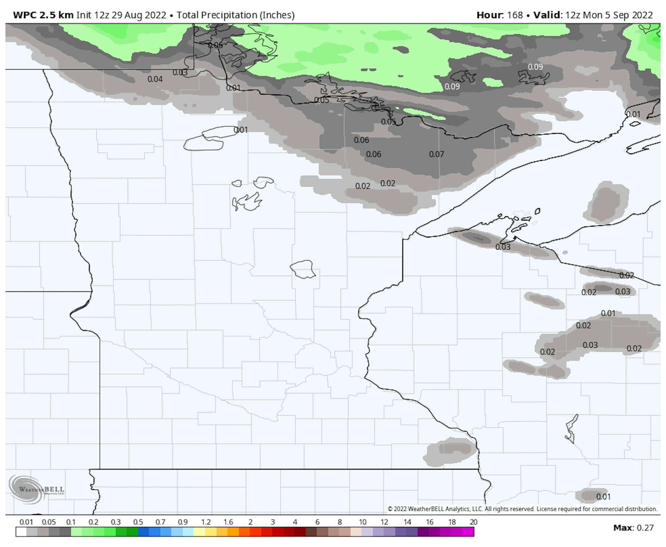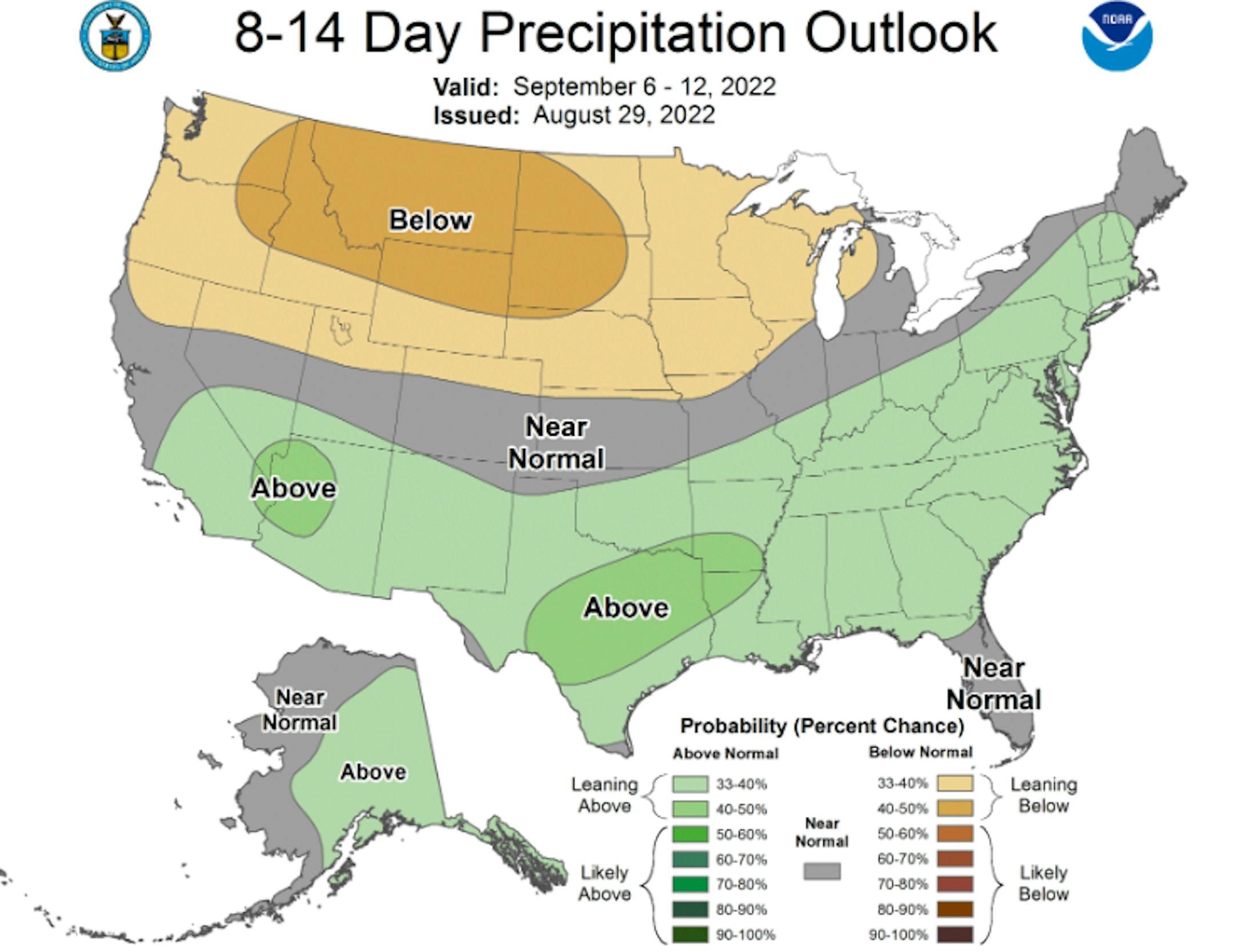 Here's the extended precipitation outlook through Labor Day Monday, which shows mostly dry conditions across the state.