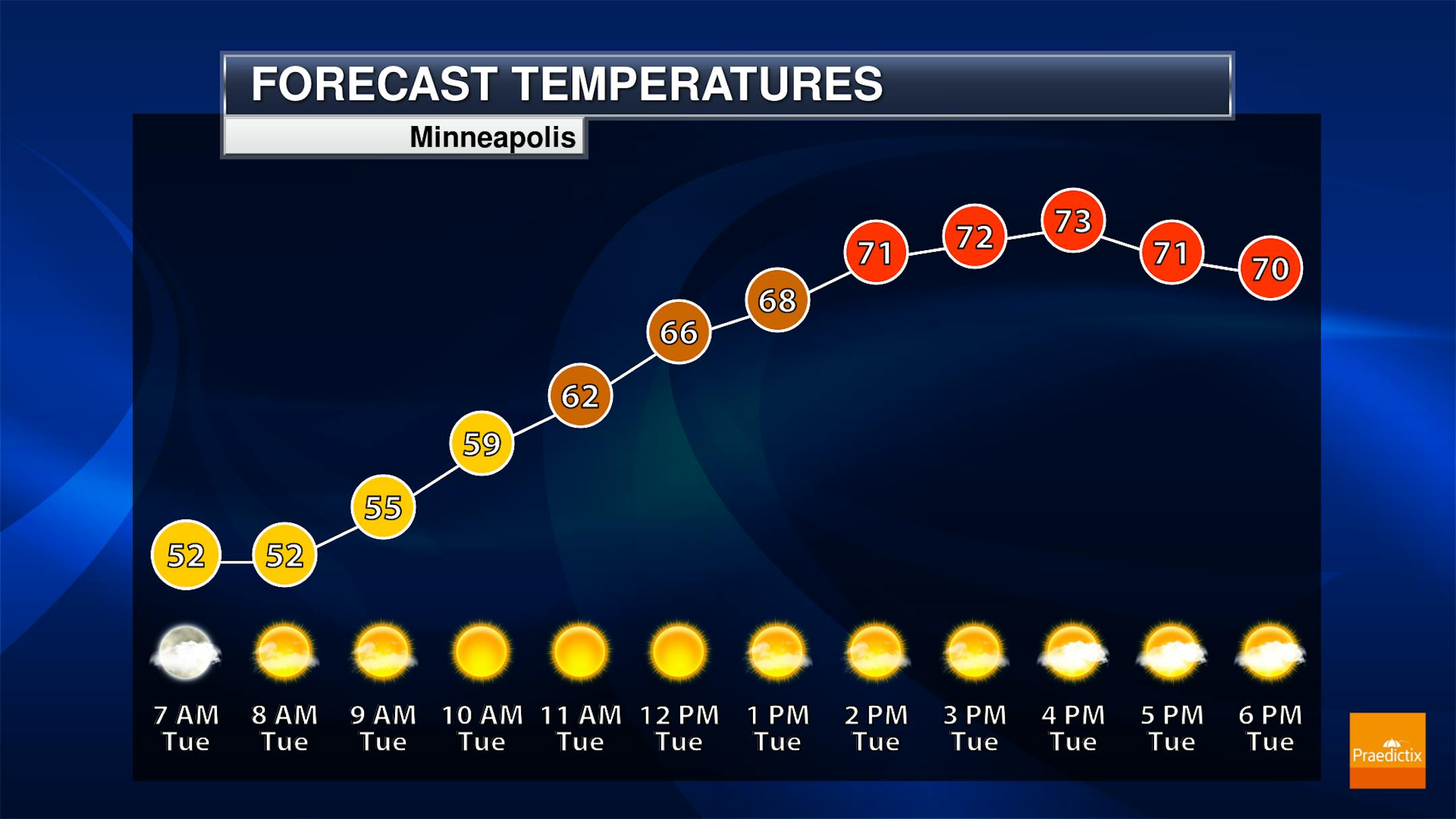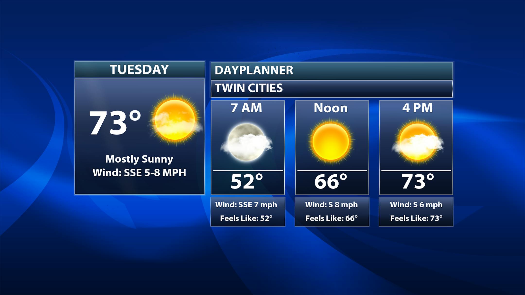 Some clouds at times will be possible across the state, but no precipitation is expected as we head throughout the day. You can see some cooler air starting to move into northwestern Minnesota where highs will be stuck in the 50s. Out across southern Minnesota highs will reach the 70s - up to 15F degrees above average.