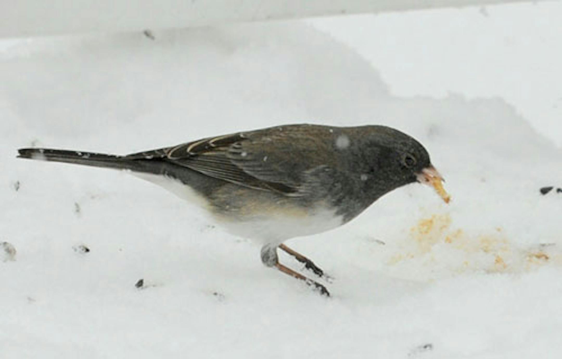 Now, birds. Yesterday, Tuesday, cold, windy, snowy, our bird feeders on our deck were busy all day long. We had two dozen juncos, Fox and Song sparrows, cardinals and more of the usual winter species. Lots of birds. I scattered more thistle seed early today, anticipating another banner day. So far, bird count is about 90 percent off. The only difference is today's bright sun.