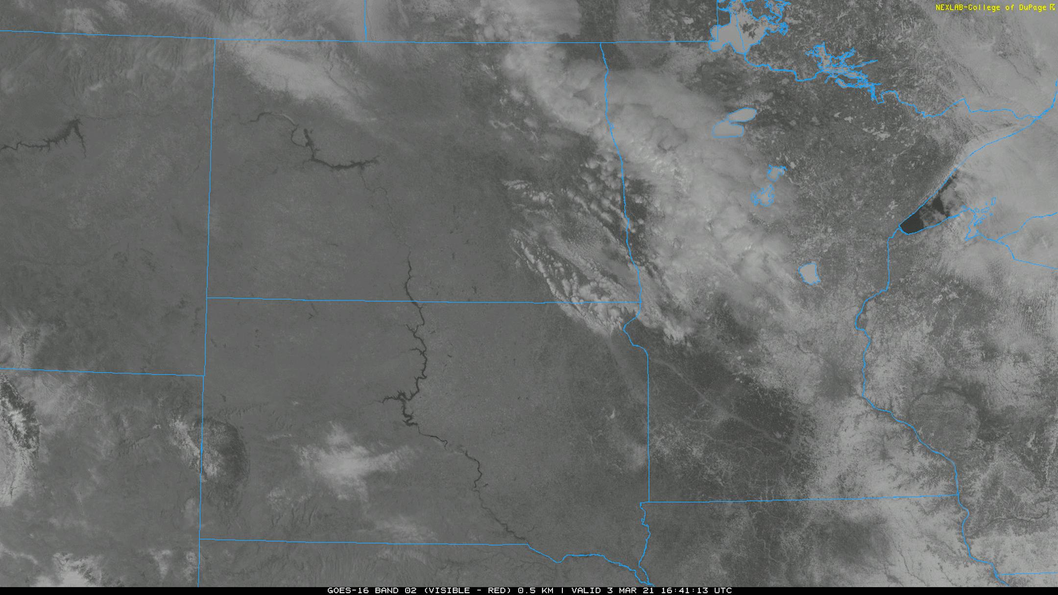 In this satellite image from the College of DuPage at 10:41 AM Wednesday, you can still see the blanket of snow on the ground stretching from southeastern Minnesota through the Twin Cities to the St. Cloud area and across northern Minnesota. This should continue to shrink as we head through the next several days.