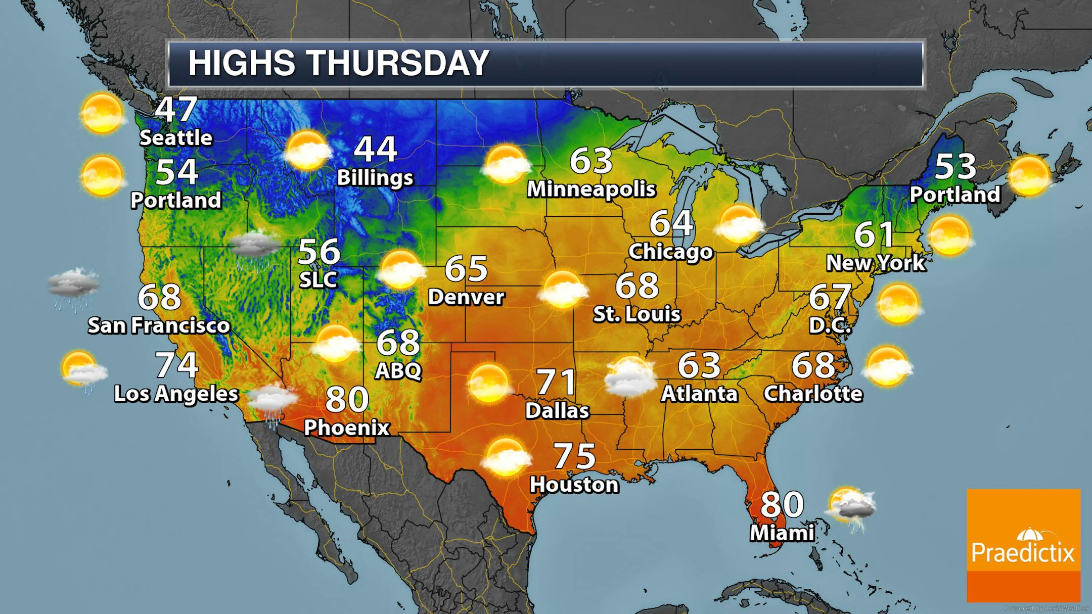 Enjoy what is probably the last 60F-degree day of the year on Thursday, as cooler temperatures rush in toward Friday and the weekend. Friday will be the coolest of that three-day period with highs only in the low 40s behind the system that pushes through Thursday. Temperatures look to rebound to around 50F for both days of the weekend. Mainly sunny skies are expected all three days, with maybe a few more clouds around heading into Sunday.