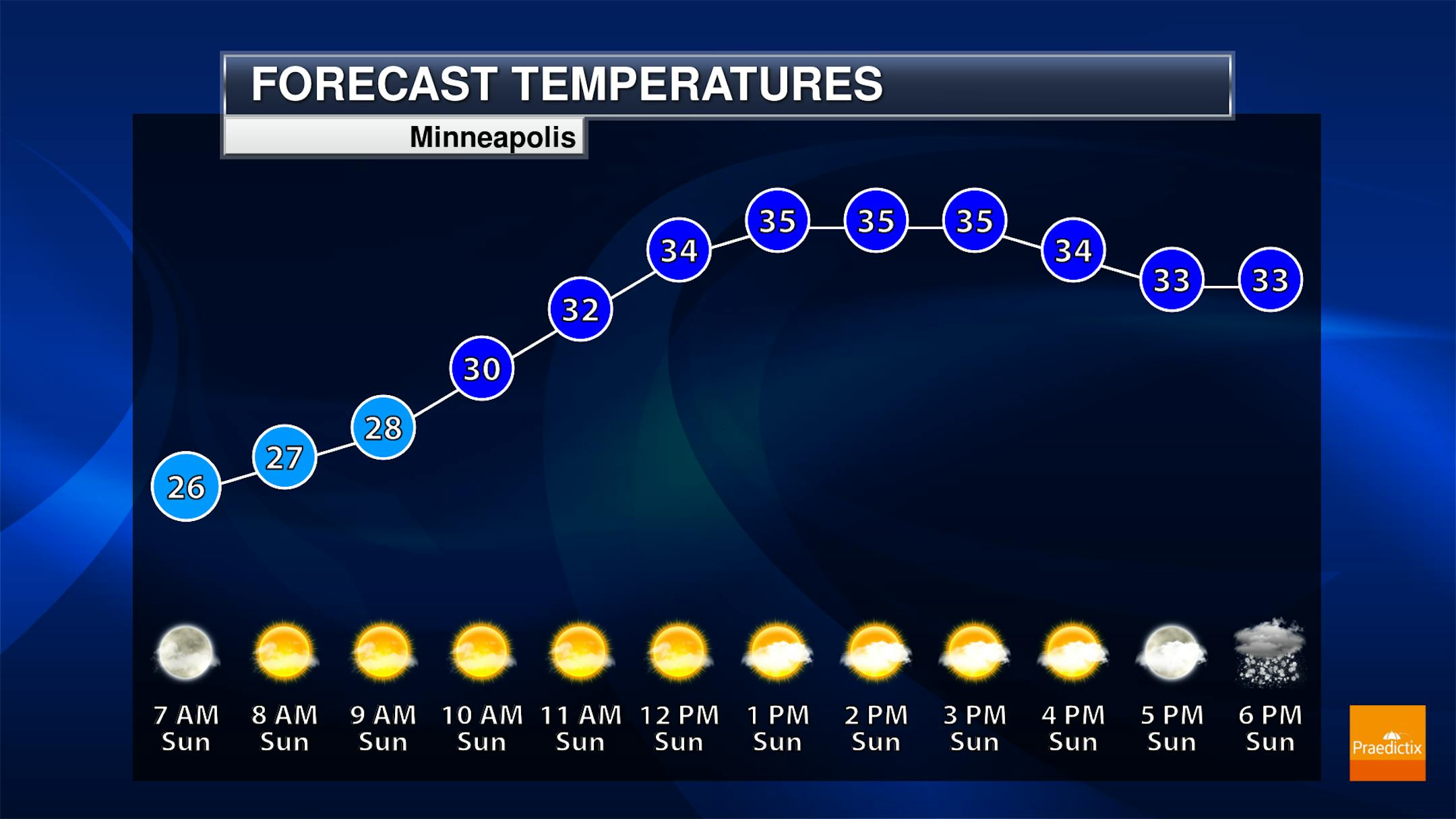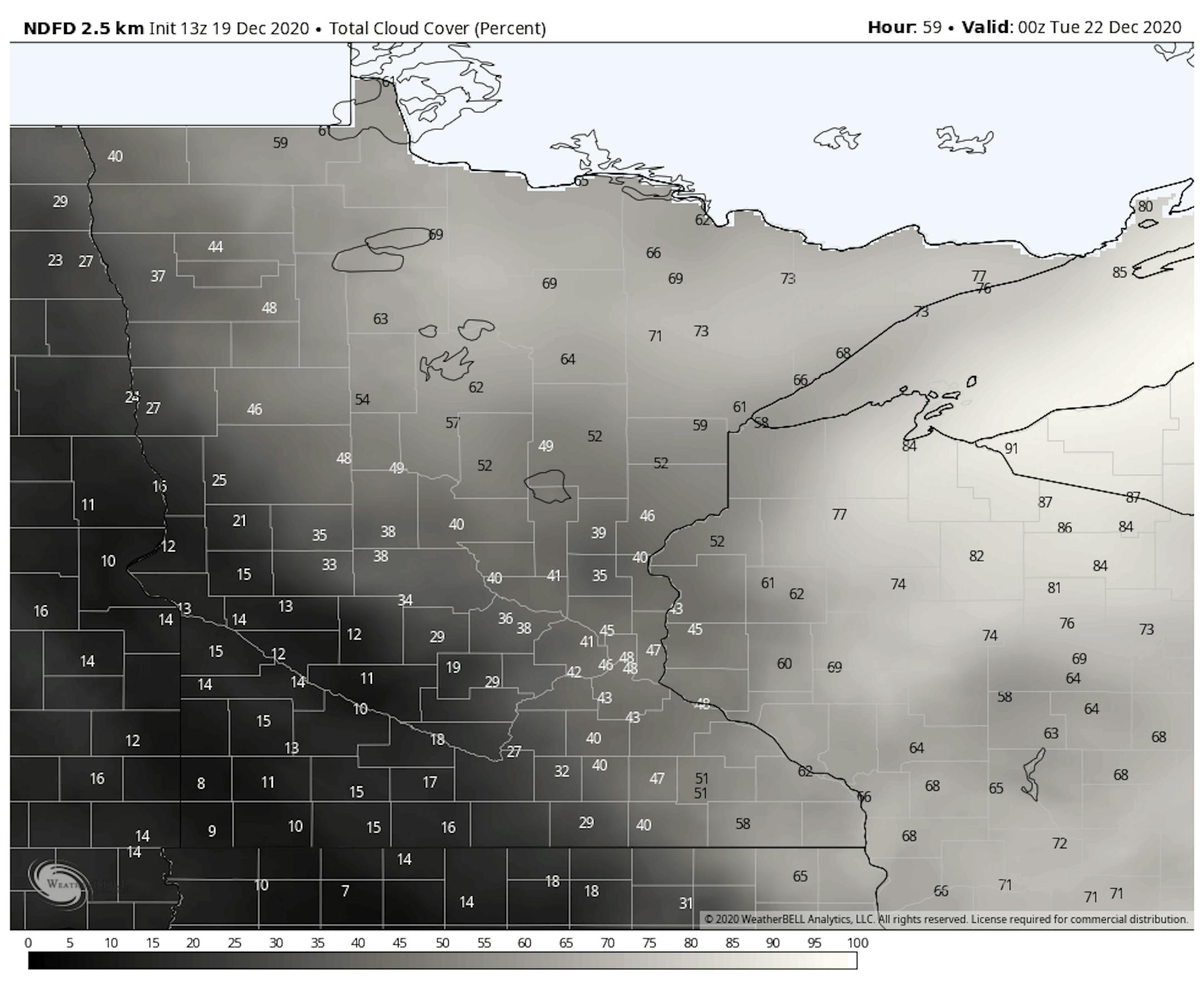 While clouds will be on the decrease here in the Twin Cities as we head toward Monday evening, the current forecast still has about 50% cloud cover as we head toward 6 PM. If you head west, there does appear to be the chance for less cloud cover at the moment out toward areas like Mankato, Redwood Falls, and Willmar.
