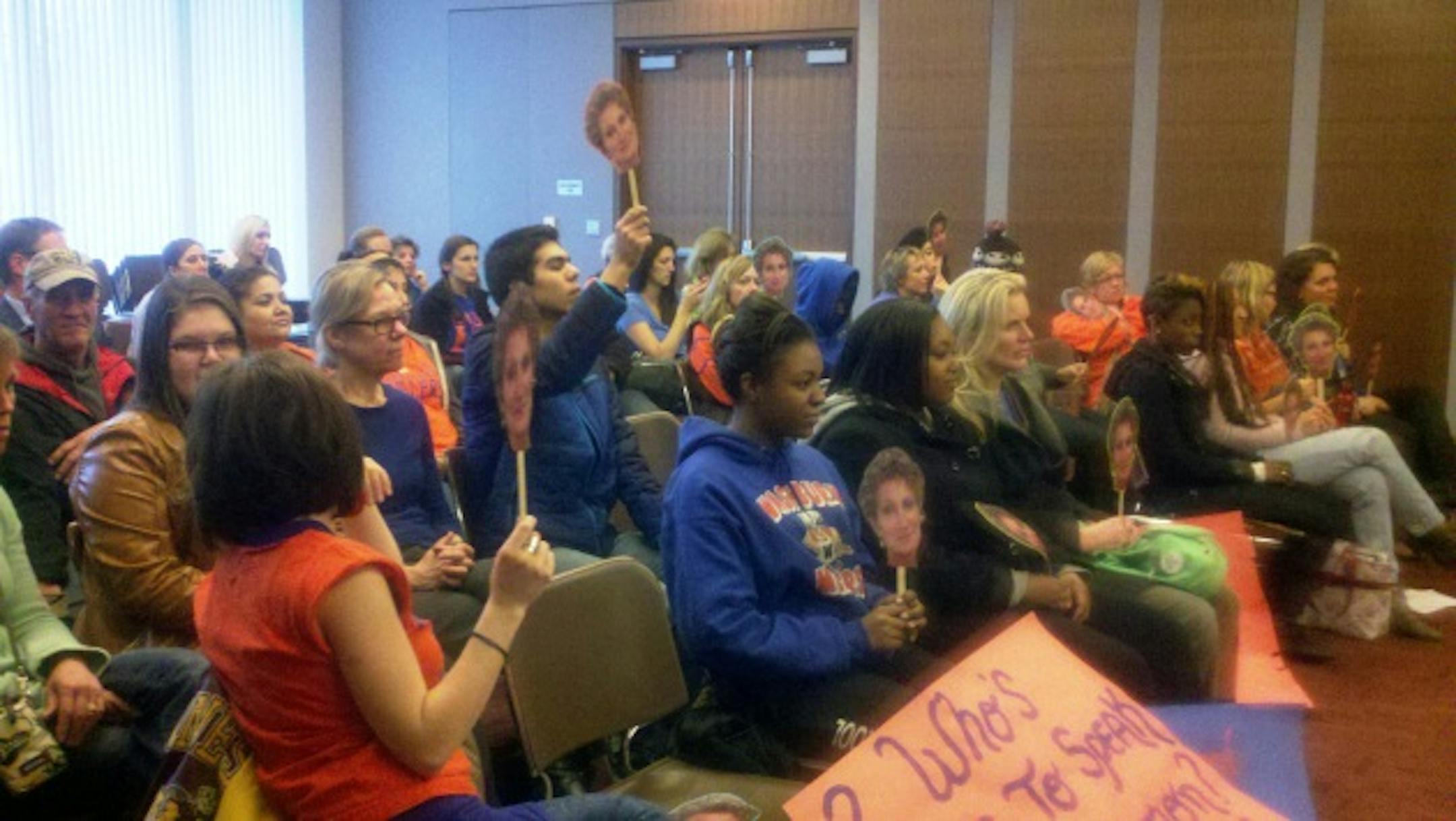 They sat silently as the school board held a planning retreat Wednesday evening, but out in the hallway some 46 students, staff and parents from Washburn High School had plenty to say about the ouster of Principal Carol Markham-Cousins
