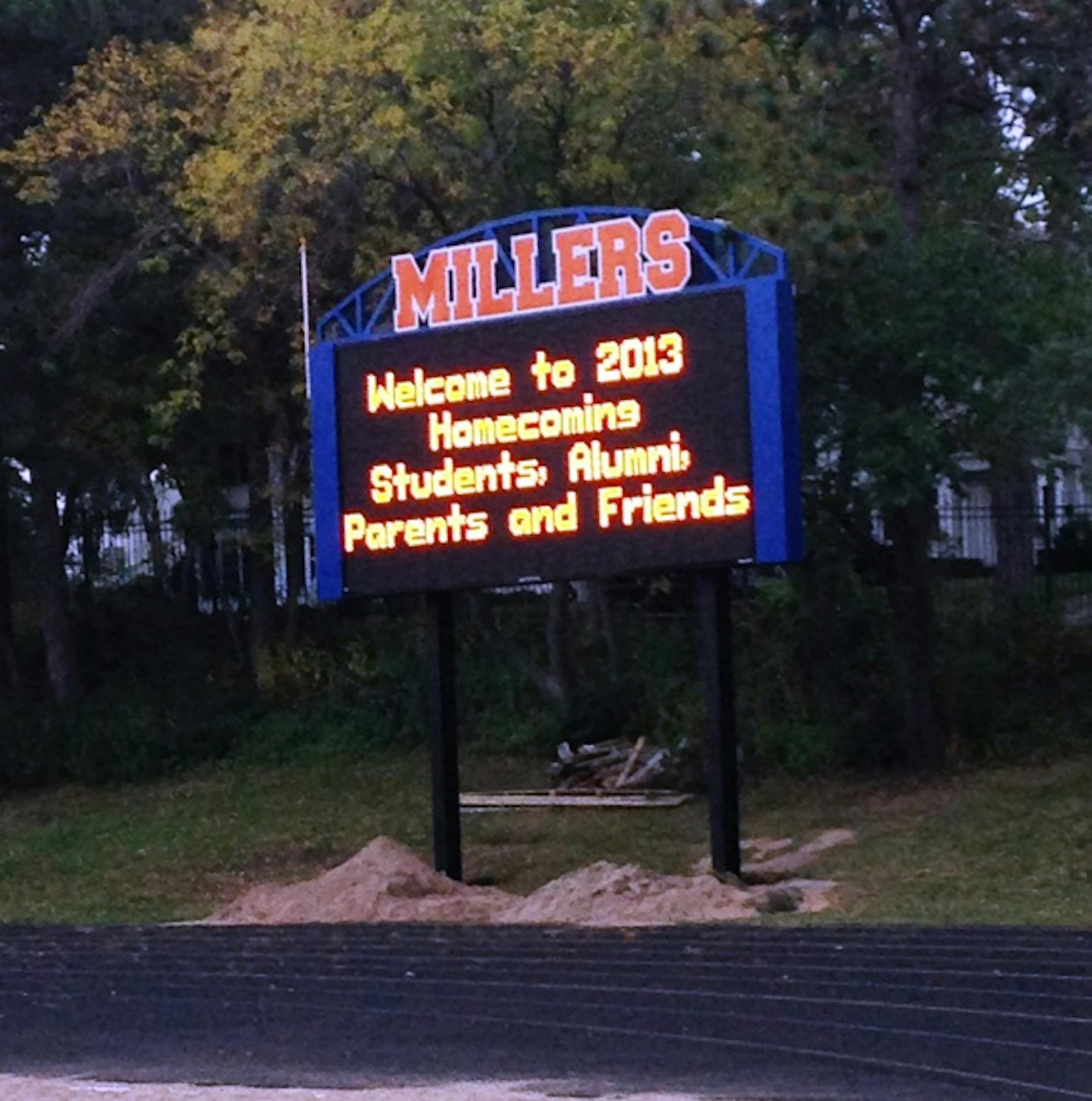 The board was originally to be much bigger than the one pictured above and installed outside the north end of the stadium. But when neighbors objected to the cutting of trees for its installation, the city discovered that the district hadn't obtained the necessary municipal approvals.and ruled the original proposal too tall under city zoning rules.