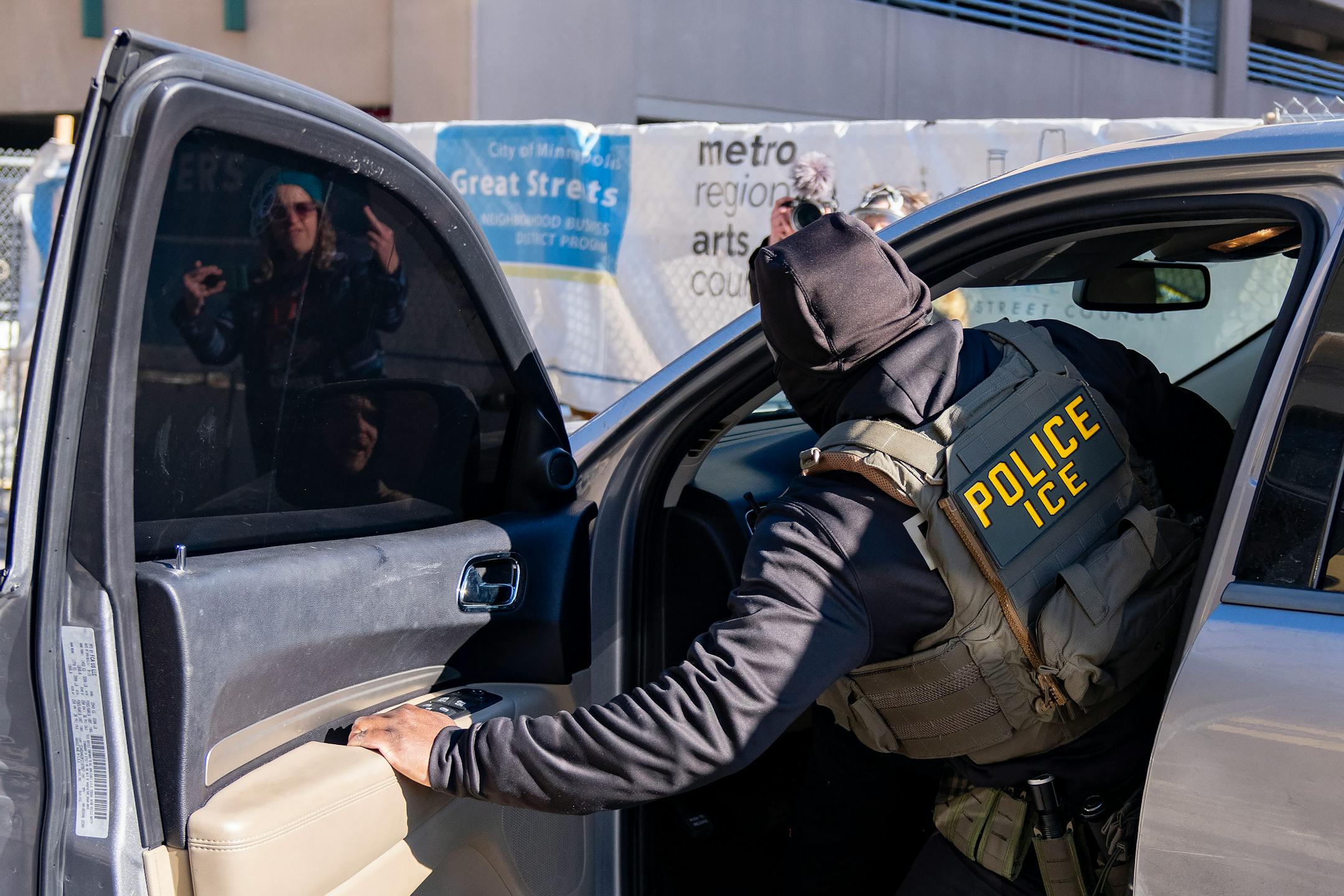 “If you have a specific person in mind,” Nicollet County Commissioner Nicole Helget said to agents from her SUV through a partially open window of a vehicle next to her with ICE agents inside, “I can likely help you get that person out of here.”
