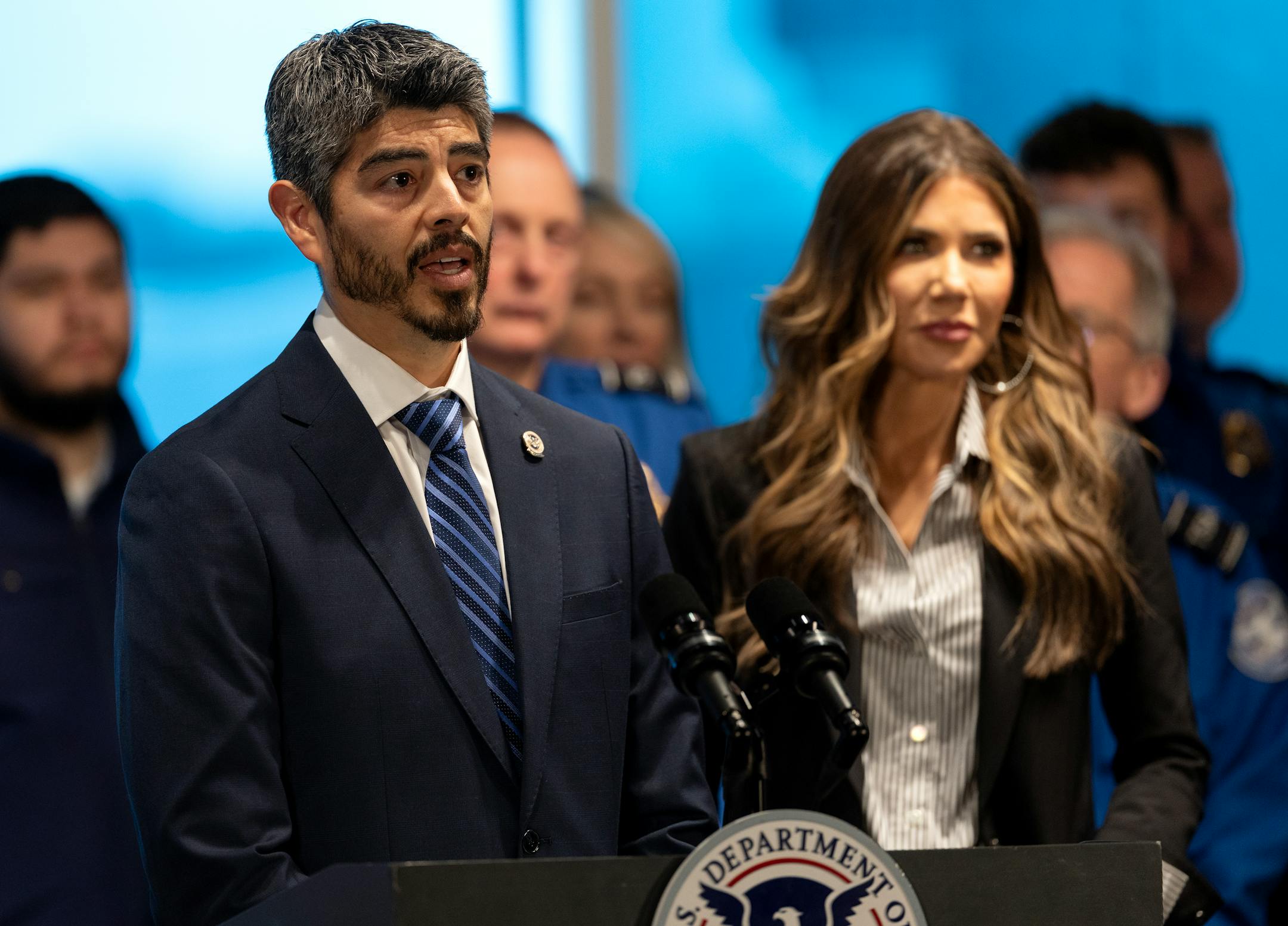 Noem, speaking in a gate area flanked by TSA officers, said the 43-day shutdown tested federal workers across the country but that aviation security remained intact because employees “showed up when people were counting on you.”