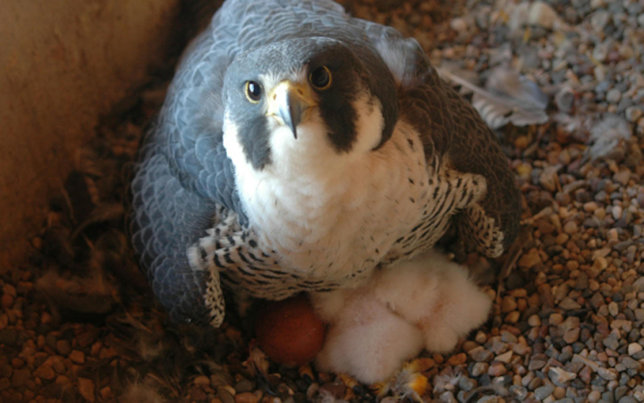 Live video from a pair of peregrine falcons nesting atop a downtown St. Paul office building is being featured on the Minnesota Department of Natural Resources website."This is a wonderful opportunity to watch peregrines raise their young in an urban setting" said Carrol Henderson, DNR nongame wildlife program supervisor. "It is exciting to watch the birds first-hand, in their normal habitat, without disturbing them."The webcam is at http://webcams.dnr.state.mn.us/falcon/. A photo gallery also is at the site.Peregrines have been raising young in this location since 1988. The female has already laid three eggs and could lay up to two more in the coming days.Here's more from a DNR news release:The public is able view the activity in the nesting box, with the help of Sentinel Property Management and the tenants at the Bremer office building.Once pushed to the brink of extinction, the peregrine falcon has made a steady recovery in the United States. Once down to only a few pairs in Minnesota, peregrines have returned to Minnesota's skies and their natural habitat, including Minnesota's bluffs, cliffs and buildings. The peregrine camera was paid for by the DNR's nongame wildlife program, which is largely funded by donations. The lines on the Minnesota income tax form and property tax form, marked with a drawing of a loon, give taxpayers the option to donate to the program, often referred to as the "chickadee check-off."The program works to protect and preserve more than 800 species of animals in the state that are not traditionally hunted or harvested. In addition to peregrine falcons, species such as bald eagles, trumpeter swans, loons, and American white pelicans are directly benefited by check-off contributions