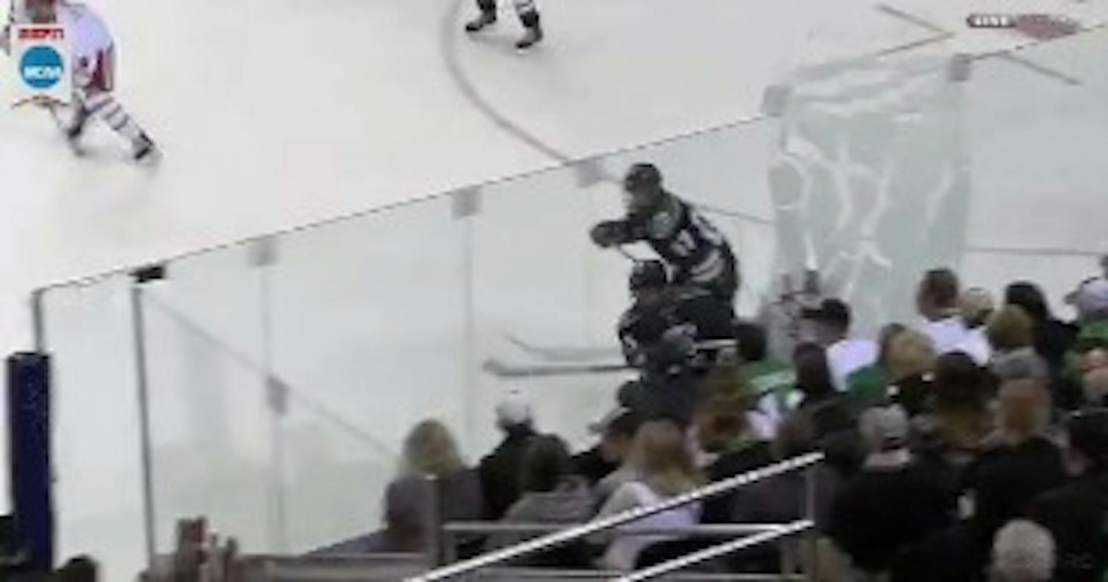 The hit came with 10:44 left in the game, and the Fighting Hawks down 3-1. Following the delay to replace the glass, UND rallied to force overtime.