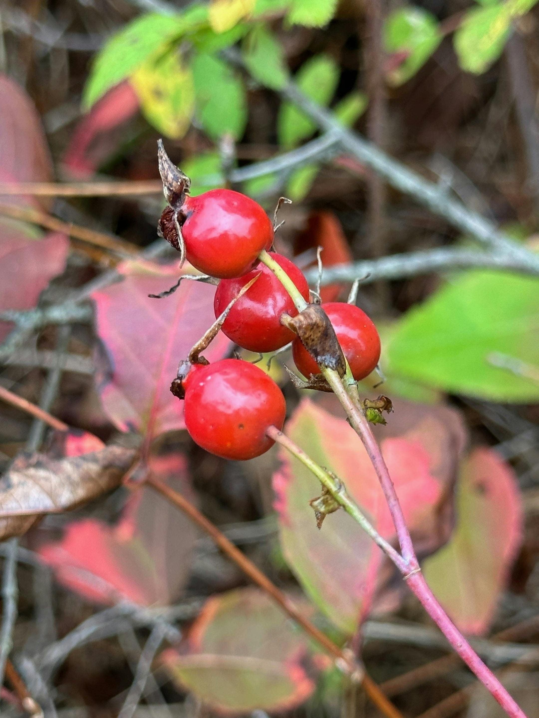 Rose hips, once used to prevent scurvy, are ripening