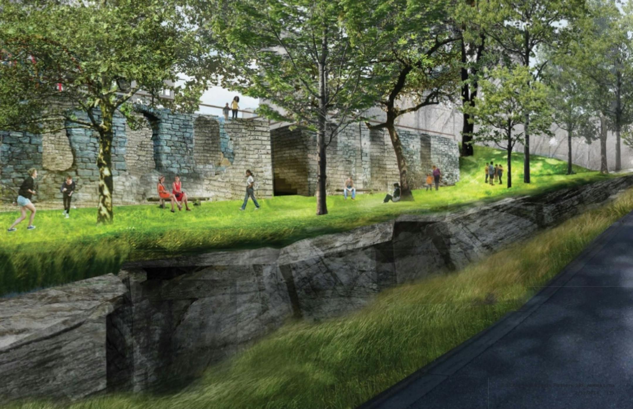A glassy pavilion that would link trails with exposed ruins below ground near the Stone Arch bridge could be a dramatic feature of a piece of downtown riverfront redevelopment.
