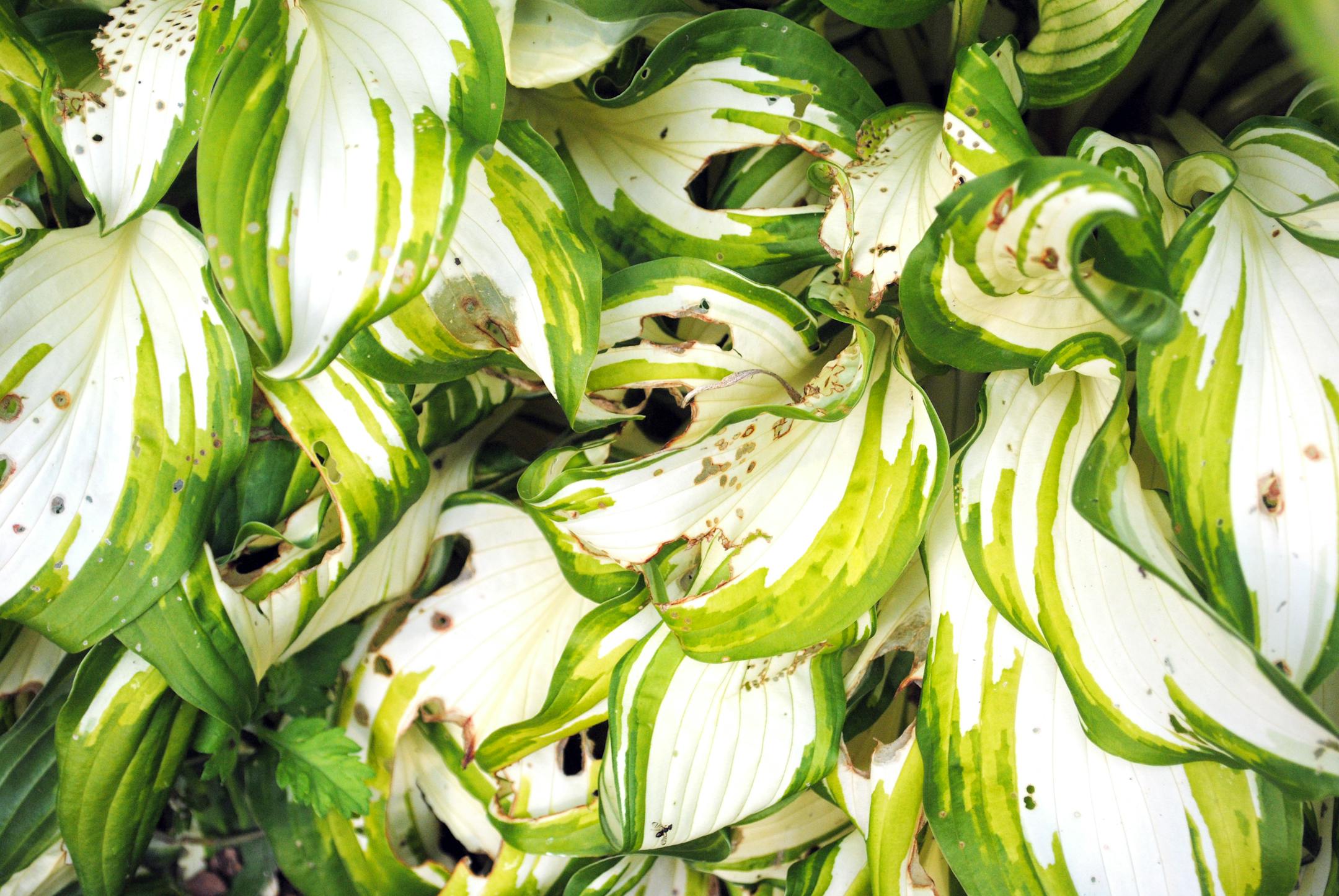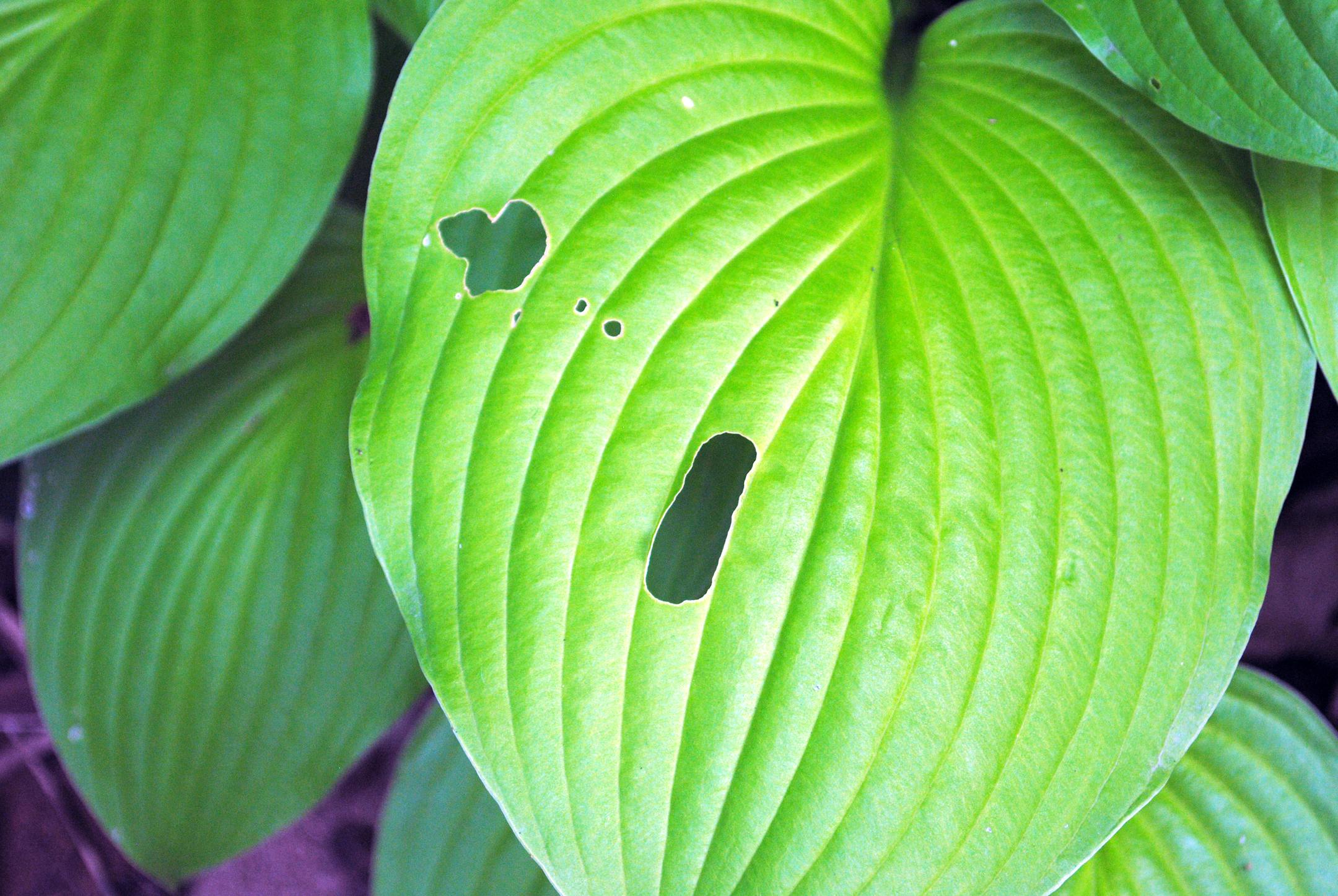 While I don't face any slugs that are known as killer, last night I came home to notice that slugs had been hard at work on some of my hostas, a byproduct of all the rains we've been having. Every year the hosta start out so upright, pristine and beautiful. Then eventually some slugs sneak past our defenses and those once-pretty leaves gain the tell-tale holes.