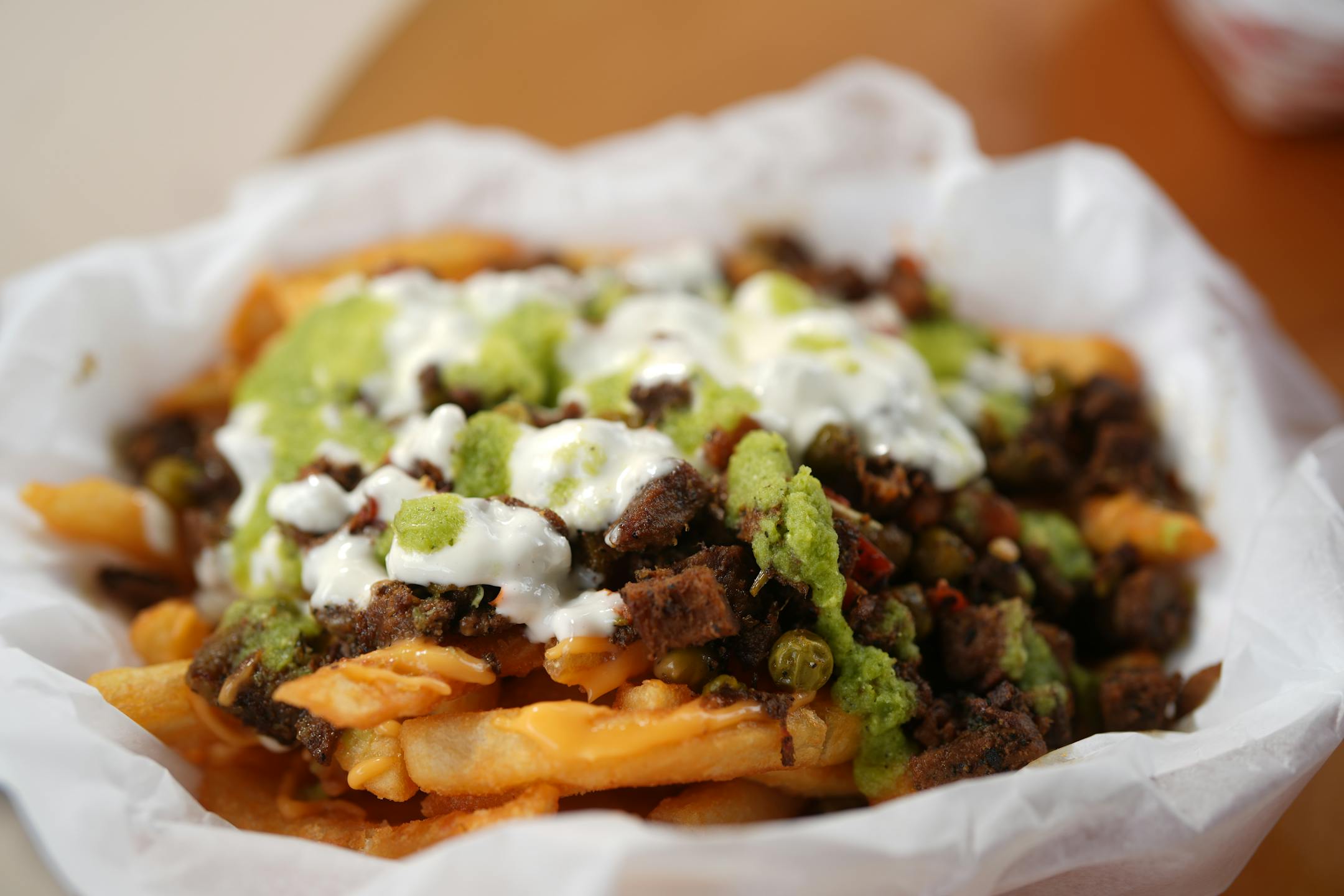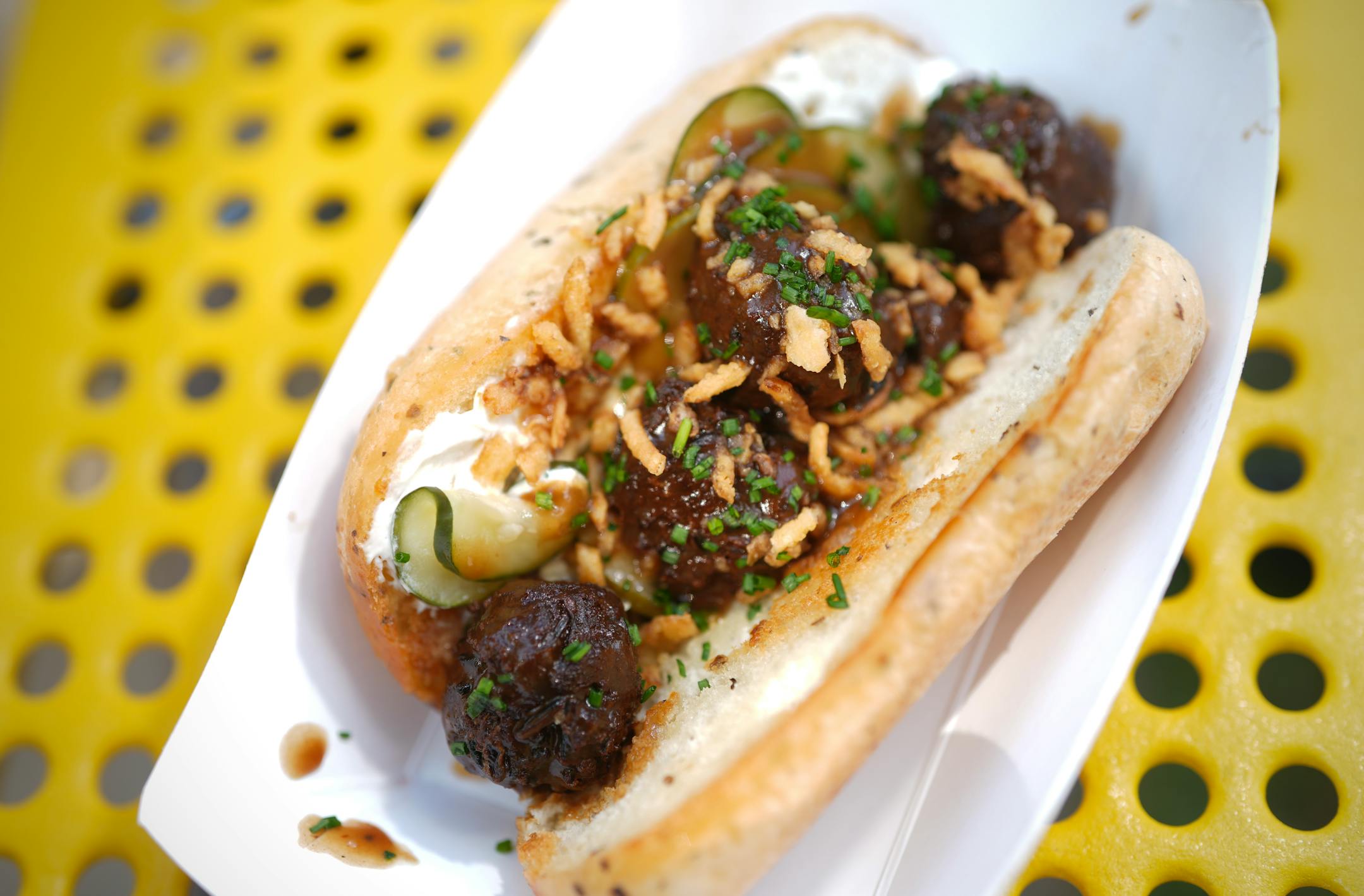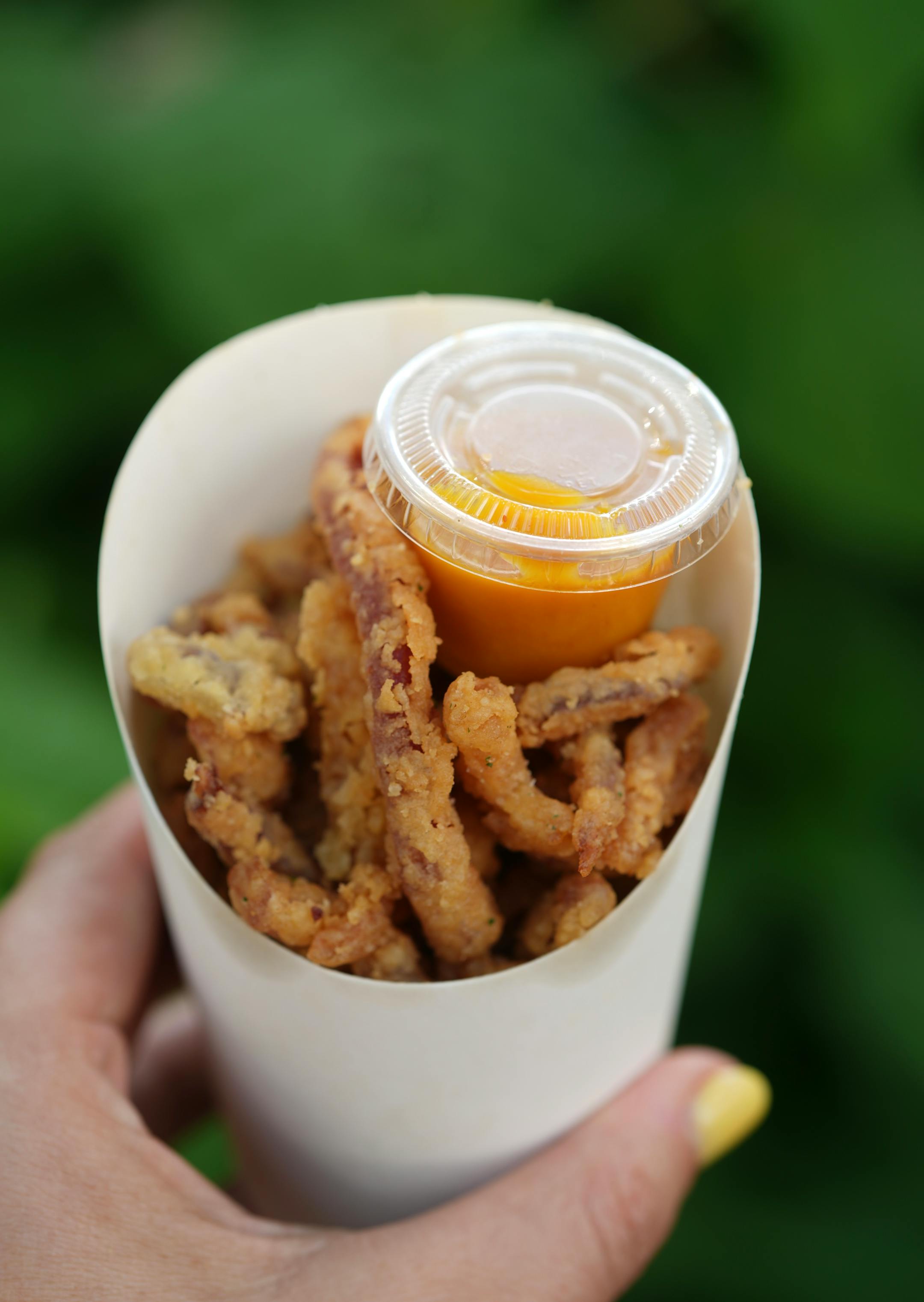 The indisputable hit of the 2025 State Fair, at least by our standards, these loaded, ultra-crisp battered fries exemplify the best of what the International Bazaar — and the Midtown Global Market — bring together. It seamlessly blends cultures with Somali-spiced beef, American cheese sauce and punchy basbaas for a late-night munchies triumph. We want to eat this in a comfy booth with our besties while dishing about the latest life updates. But we’re perfectly happy eating this hefty and head-turning paper boat of happiness right here. Note: Only available through Aug. 26.