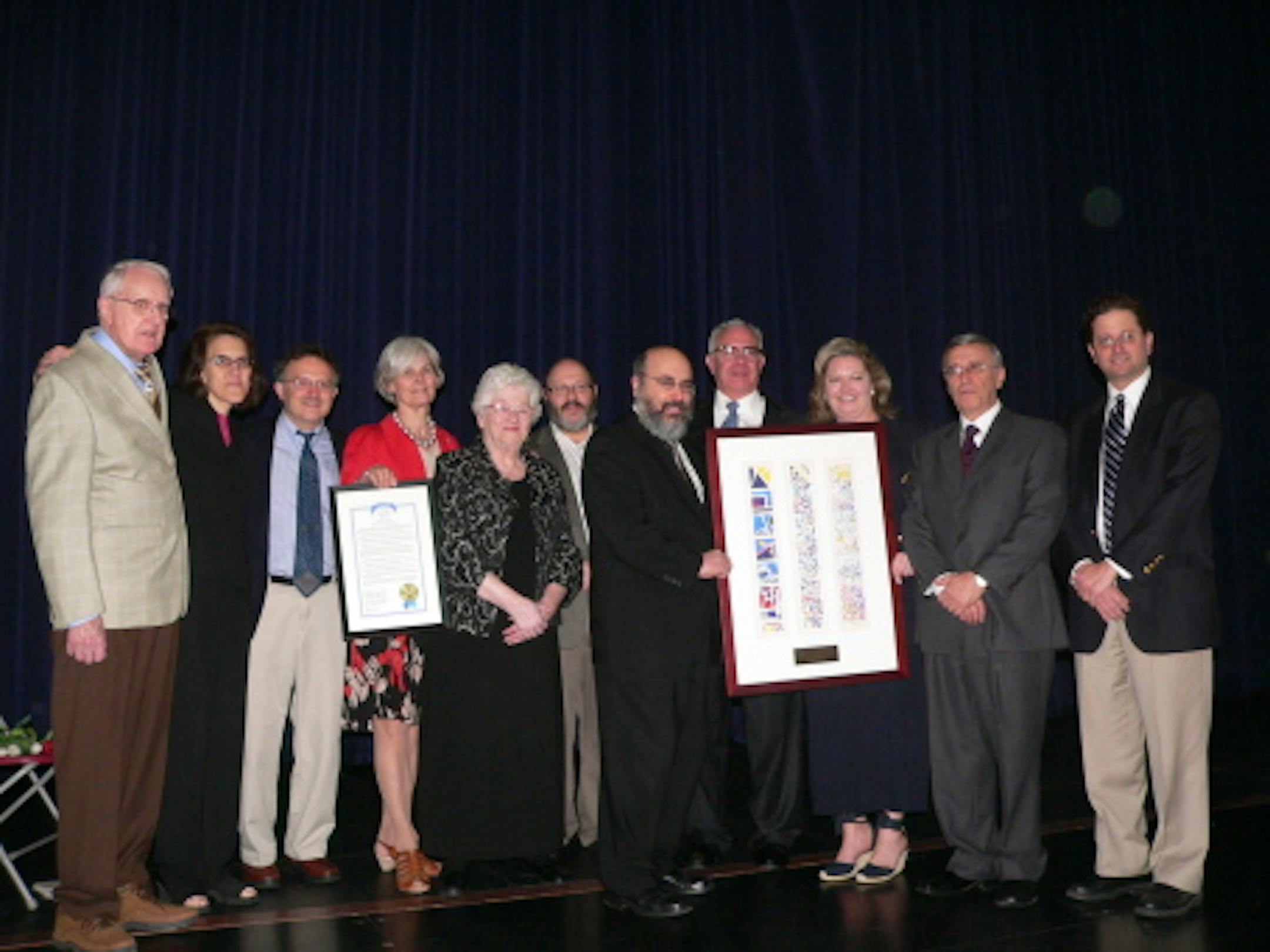 Participants in the event included (pictured from left to right): Pastor Peter Thomsen; Rabbi Sharon Stiefel; Prof. Jan Schwarz; Consul Anelise Sawkins; Judith Meisel; Rabbi Morris Allen; Rabbi Chaim Goldberger; Mark Savin; Rikke Dierssen-Morice; Cantor Gustav Goldberger; and Steve Hunegs.