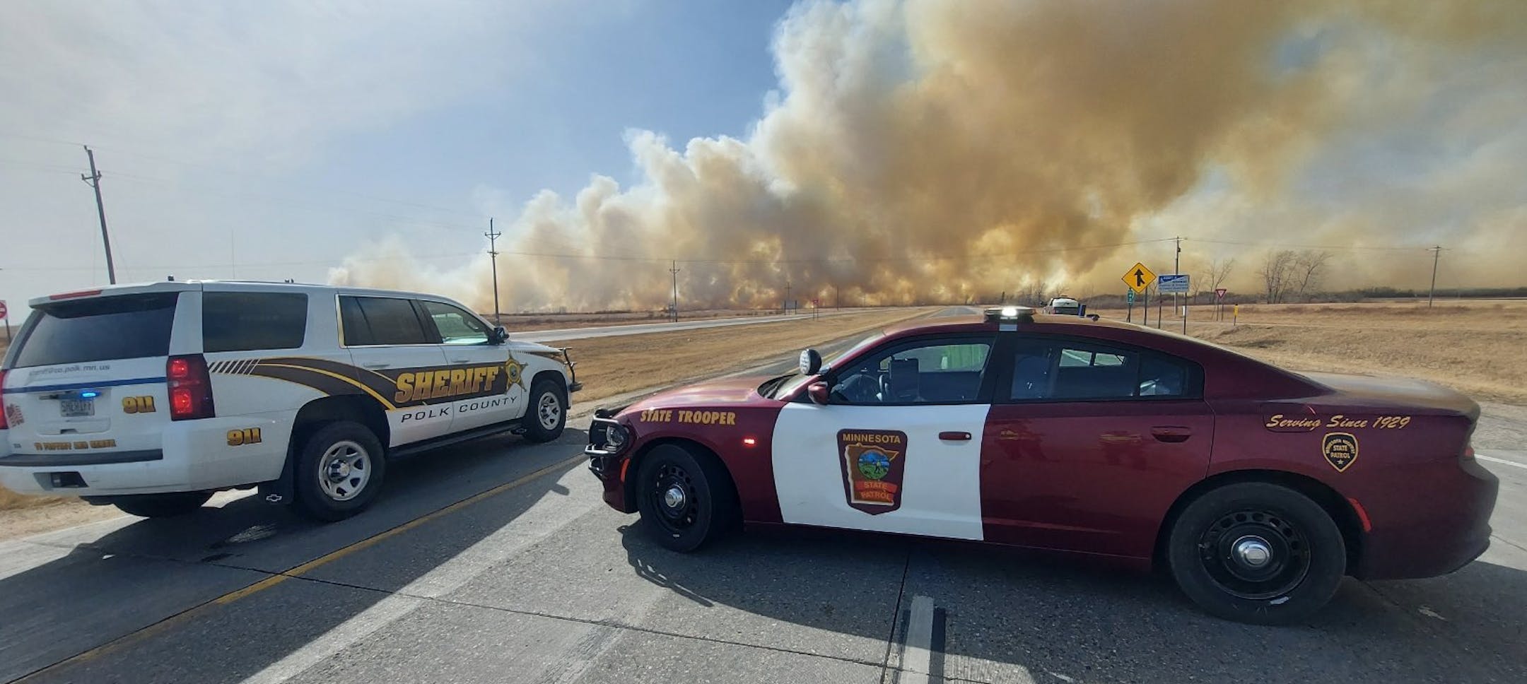 The warm weather and high winds were blamed for a grass fire about 50 miles from Grand Forks, N.D., which closed two roads in northwestern Minnesota.