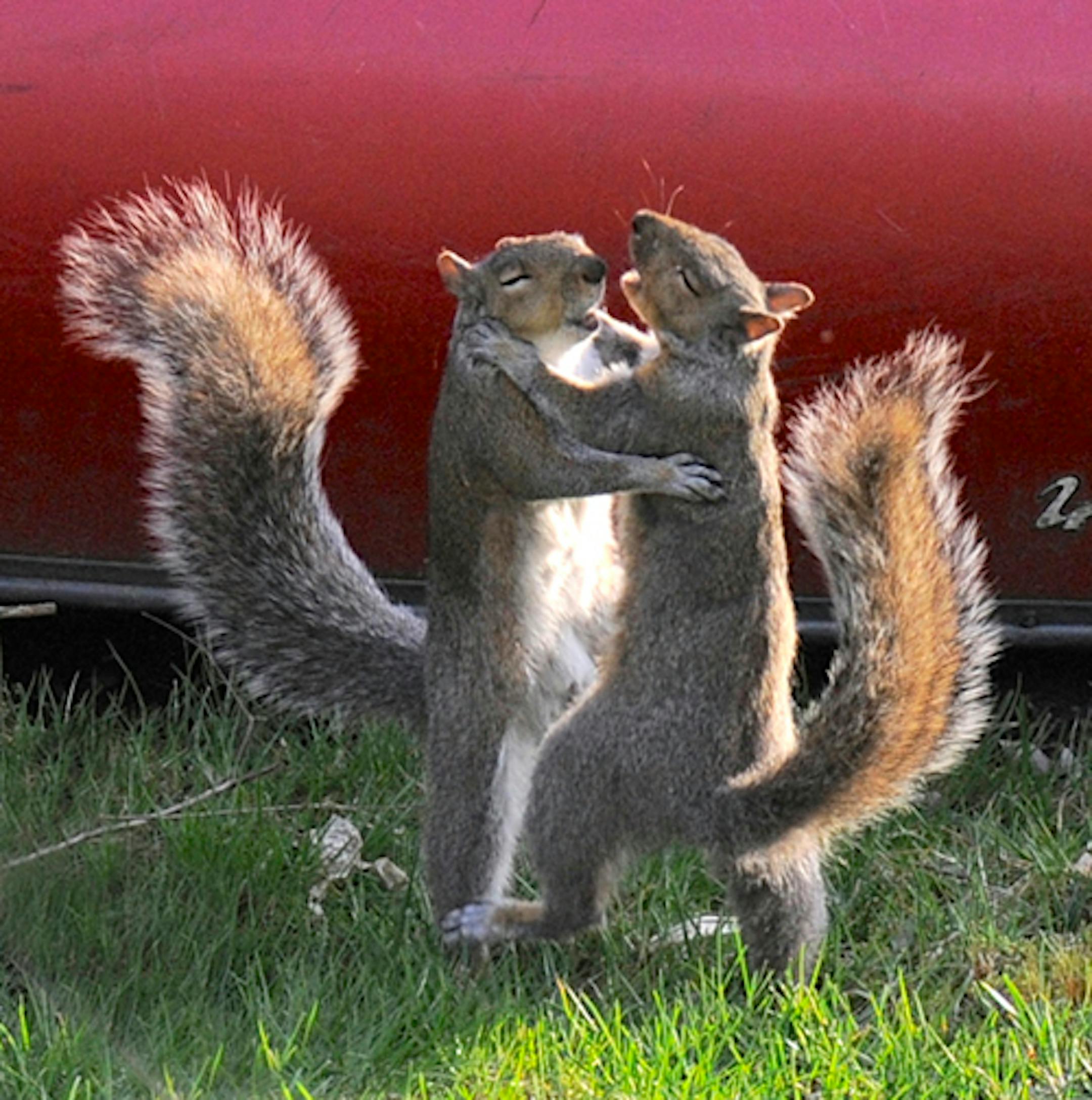 This was part of two or three minutes of chasing and wrestling. Comsummation followed.