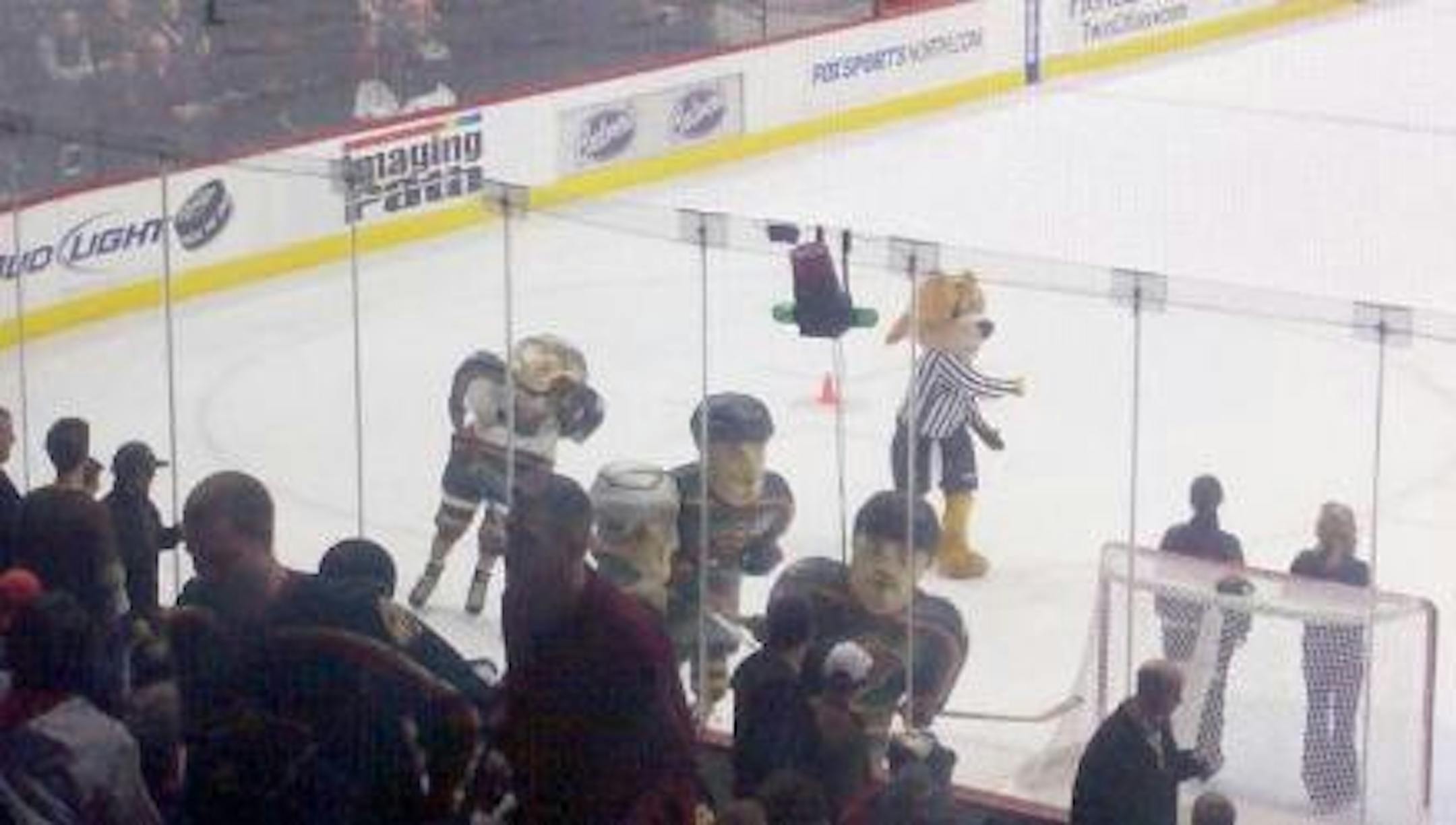 For those who have wondered what kind of perks come with distance running -- aside from good health, chafing and other expected things -- last night was a prime example. When we did the Twin Cities Marathon way back in October, we received a voucher for 2-for-1 lower level Wild tickets. The vouchers sat there for a few months before we finally put them to good use, buying tickets for us and Rocket for last night's Avalanche game.