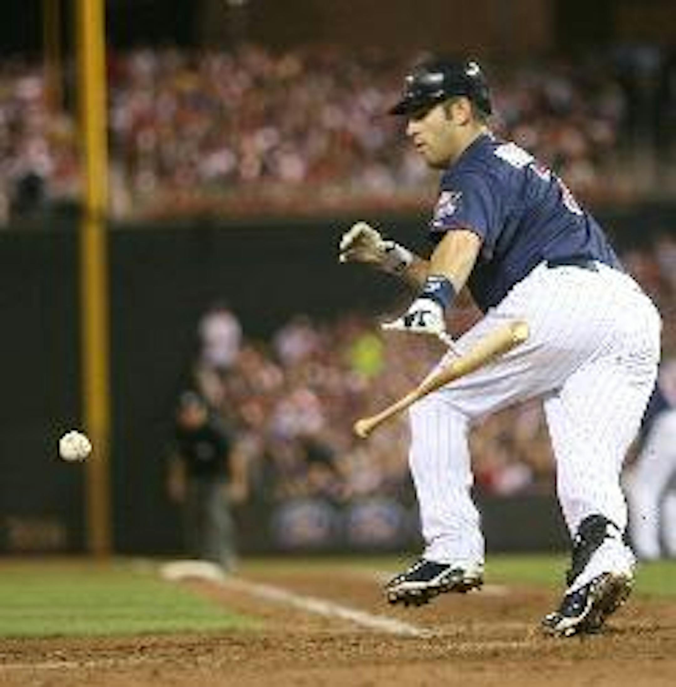 We promise we aren't saying this just to be contrarian. Let's get that out there at the start. You know the story and the situation: four consecutive hits brought the Twins from a 3-1 hole to a 3-3 tie. There are runners on first and second with one out. Mauer is up against a lefty. Minnesota is on a roll. One more big hit will give the Twins the lead. And Mauer … bunts? Twins Nation is up in arms. The runners move up, Jason Kubel makes an out to end the inning, the Twins give up a run immediately and never sniff home plate again in a frustrating and costly 4-3 loss. So how is everyone right?