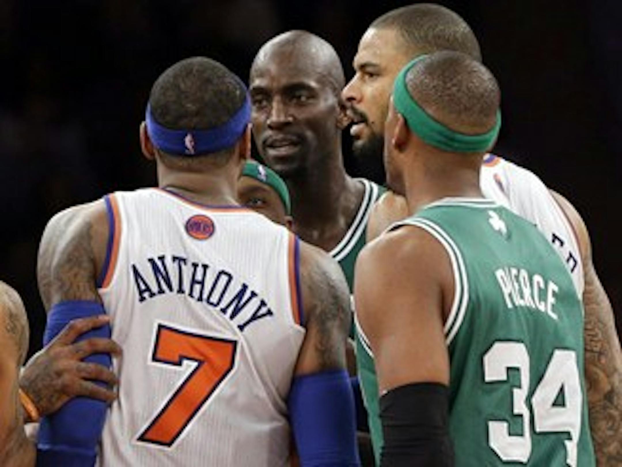 Garnett and Anthony first got tangled up in the fourth quarter and both were whistled for a technical foul after jawing with one another near midcourt. Anthony was upset over something Garnett said to him. "It's certain things that you just don't say to men, another man," Anthony said. "I felt that he crossed the line. Like I said, we're both at an understanding right now, we handled it the way we handled it. Nobody needs to know what was said behind closed doors. So that situation is handled."