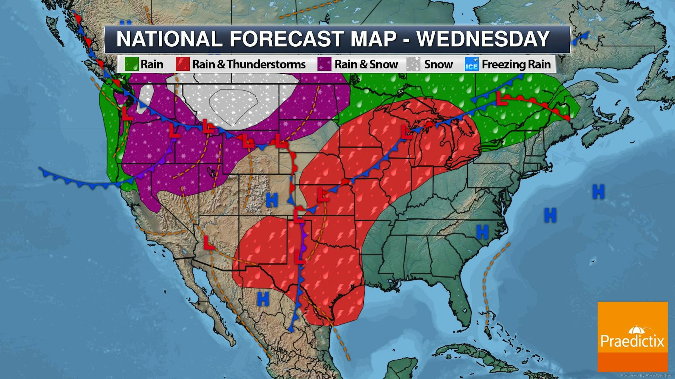Here's the simulated radar from AM Wednesday to PM Thursday, which shows another batch of heavier rains developing across the southeastern part of the state. Meanwhile, areas of snow will be possible farther North with some slushy accumulations possible as well.