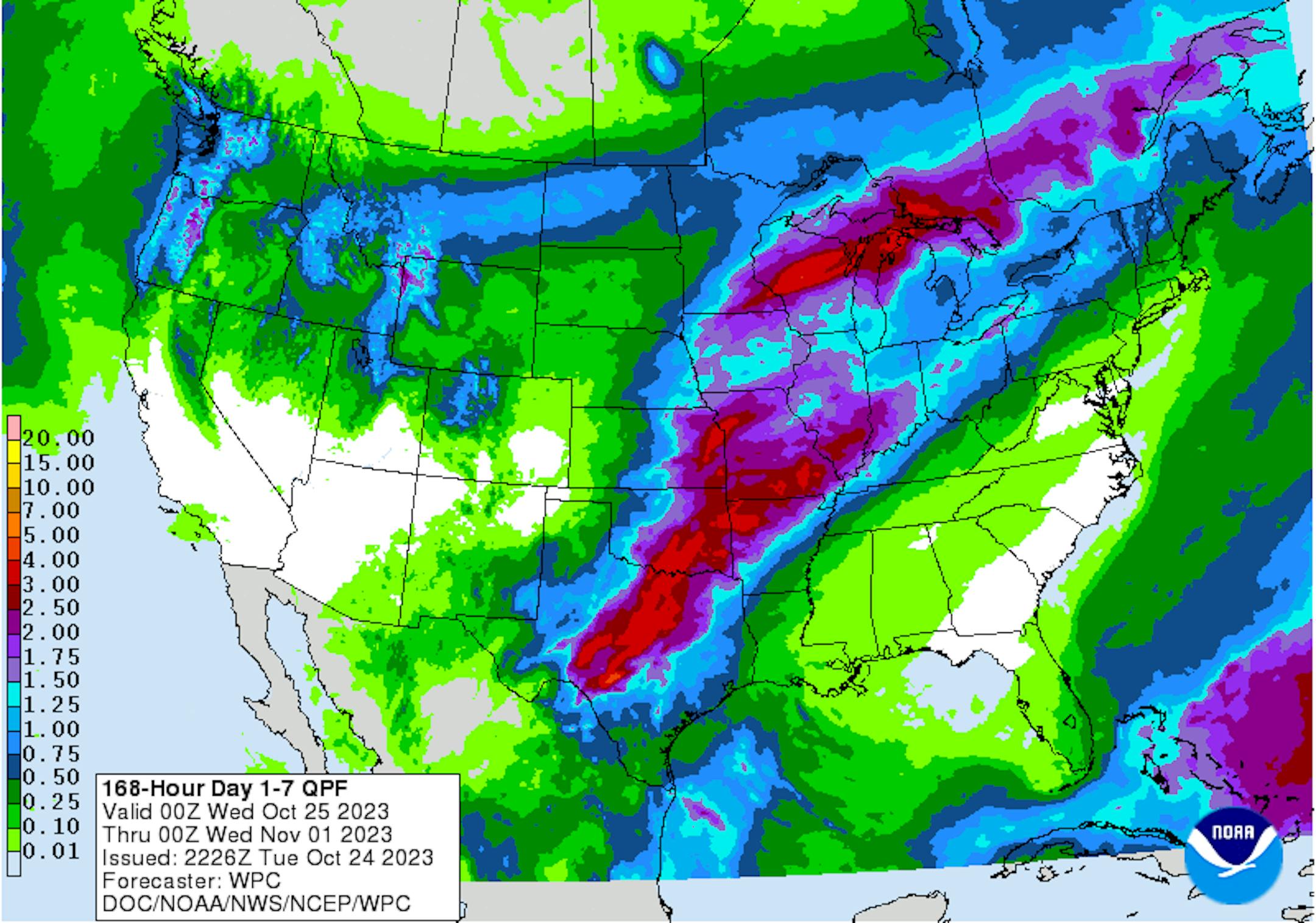 The extended precipitation outlook through the weekend shows another batch of additional heavy rainfall that could approach 1" to 3" or more in spots.