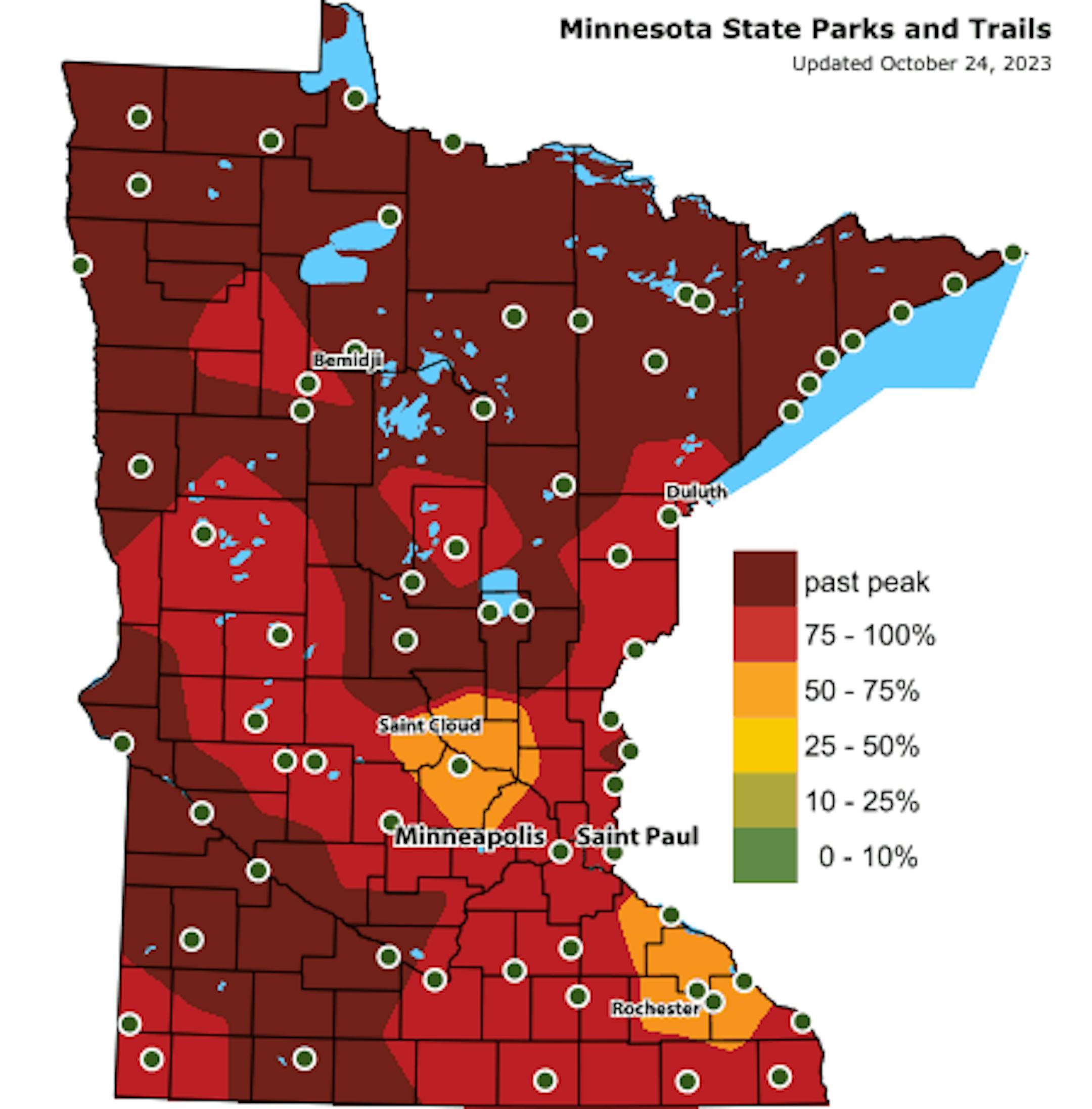 Here's a picture from Mai Xiong Thao & the MN DNR Website at Afton State Park. Fall colors look well underway there and are peaking or past peak across much of the northern half of Minnesota.