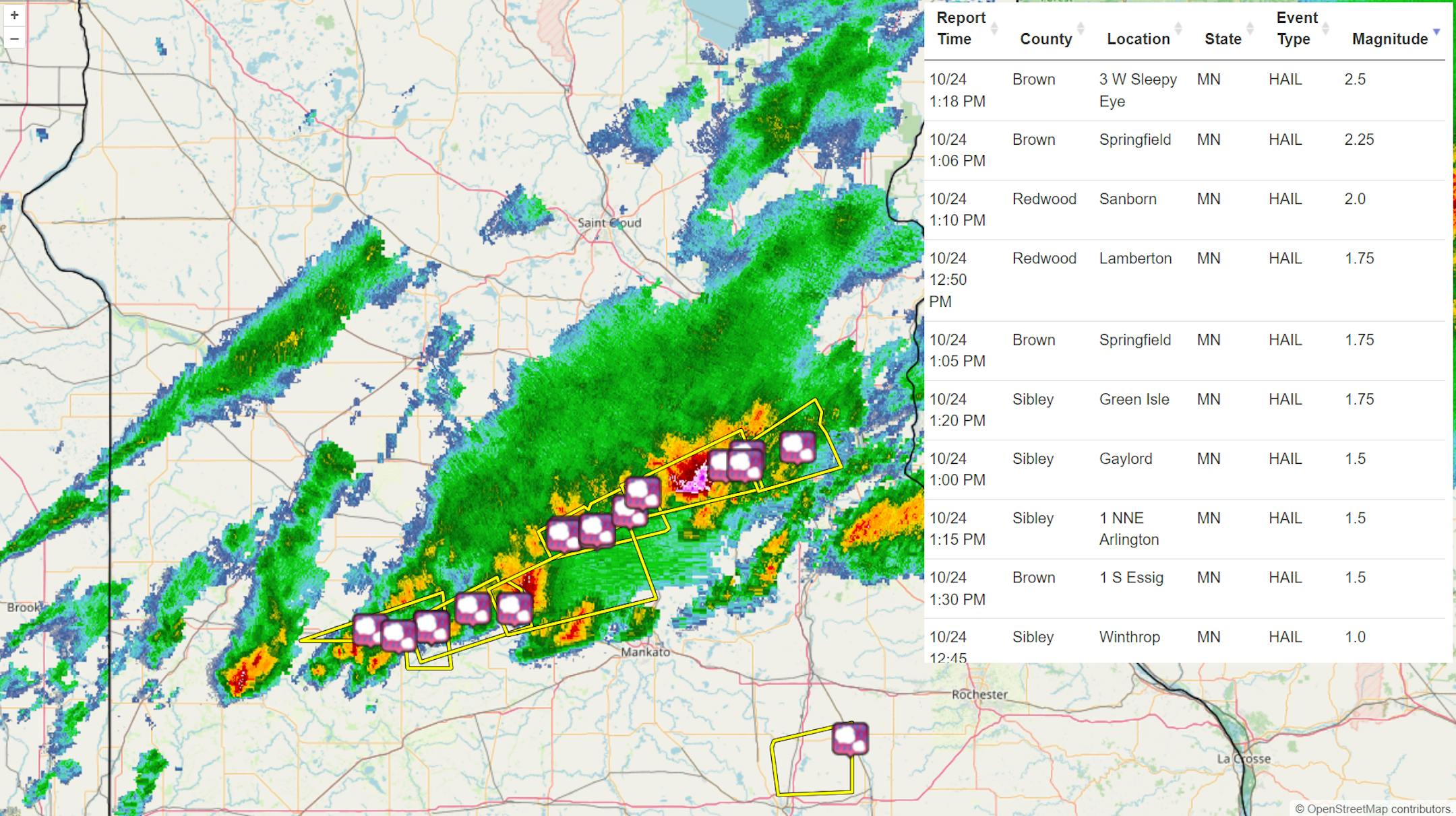 Strong to severe thunderstorms rumbled across parts of southern Minnesota on Tuesday with several large hail reports. The largest reports came out of Springfield and Sleepy Eye, where some tennis ball size hail was reported!