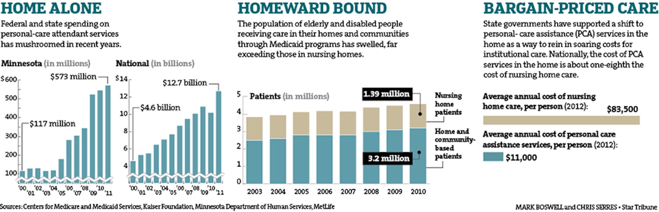 A look at the numbers, both monetary and population, comparing personal-care attendants and nursing homes in Minnesota and Nationally.