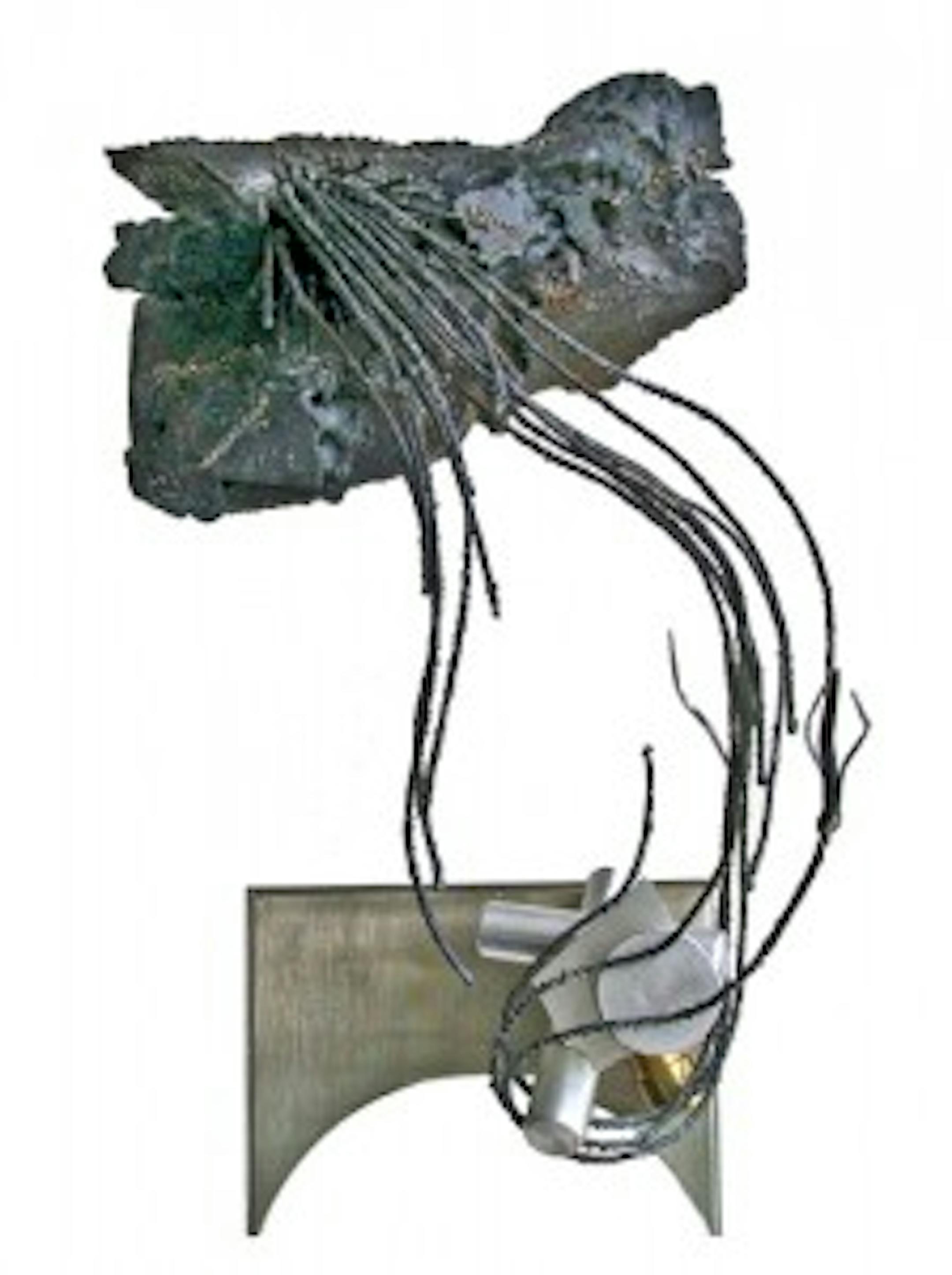Only fragments of his improbable and ultimately fortunate life are evident in the small, wall-hung sculptures on display at the Weisman. Part of a series Dallos calls "The Struggle," the polished steel and rough metal objects suggest the tensions between order and chaos, civilization and anarchy, rebirth and environmental degredation that are omnipresent in human society.