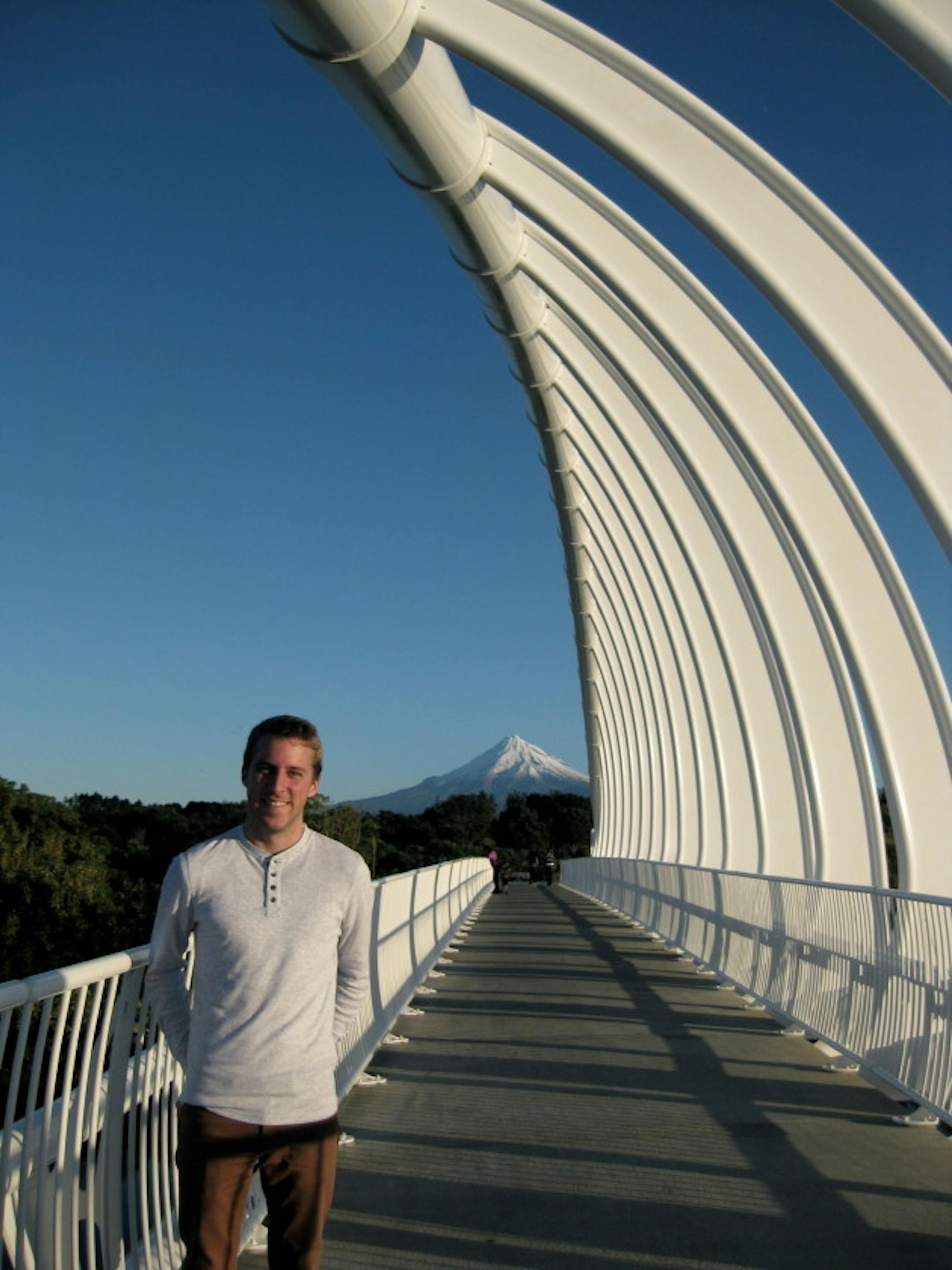We also got to explore the larger city in Taranaki; New Plymouth. New Plymouth is a great hub for outdoor adventure and architecture that is very reflective of the region. A 12 km coastal walkway surrounds the town, with great views of the ocean, and if you're their at sunset, the colors are astounding. A highlight of our trek, and worth going out of the way for, was the Te Rewa Rewa bridge. Built to frame the mountain, it reflects the strong surfing culture of the region, and resembles a wave breaking over Taranaki.