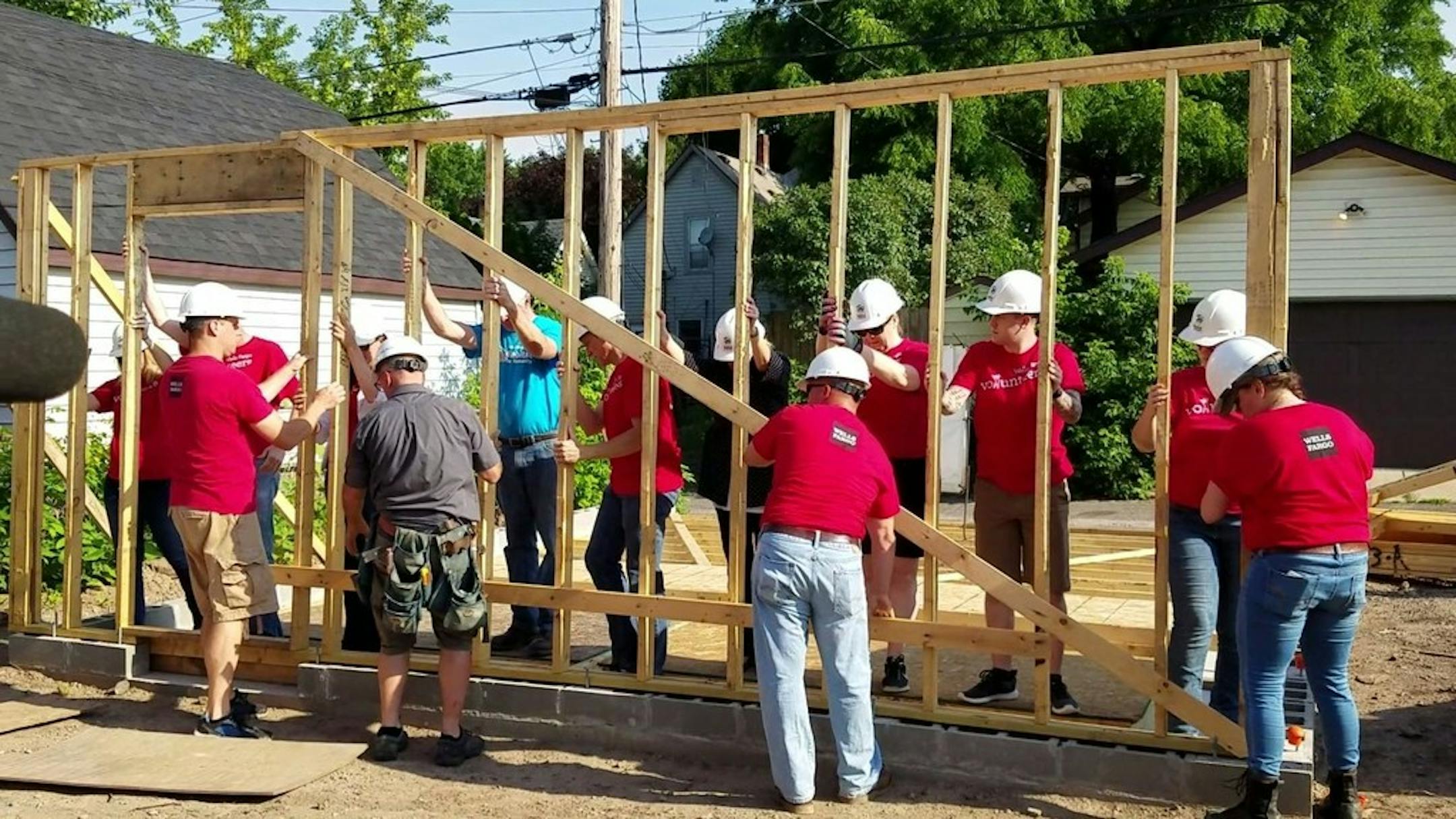 Volunteers from Wells Fargo helped build a Habitat for Humanity House in July 2018. Photo: Wells Fargo