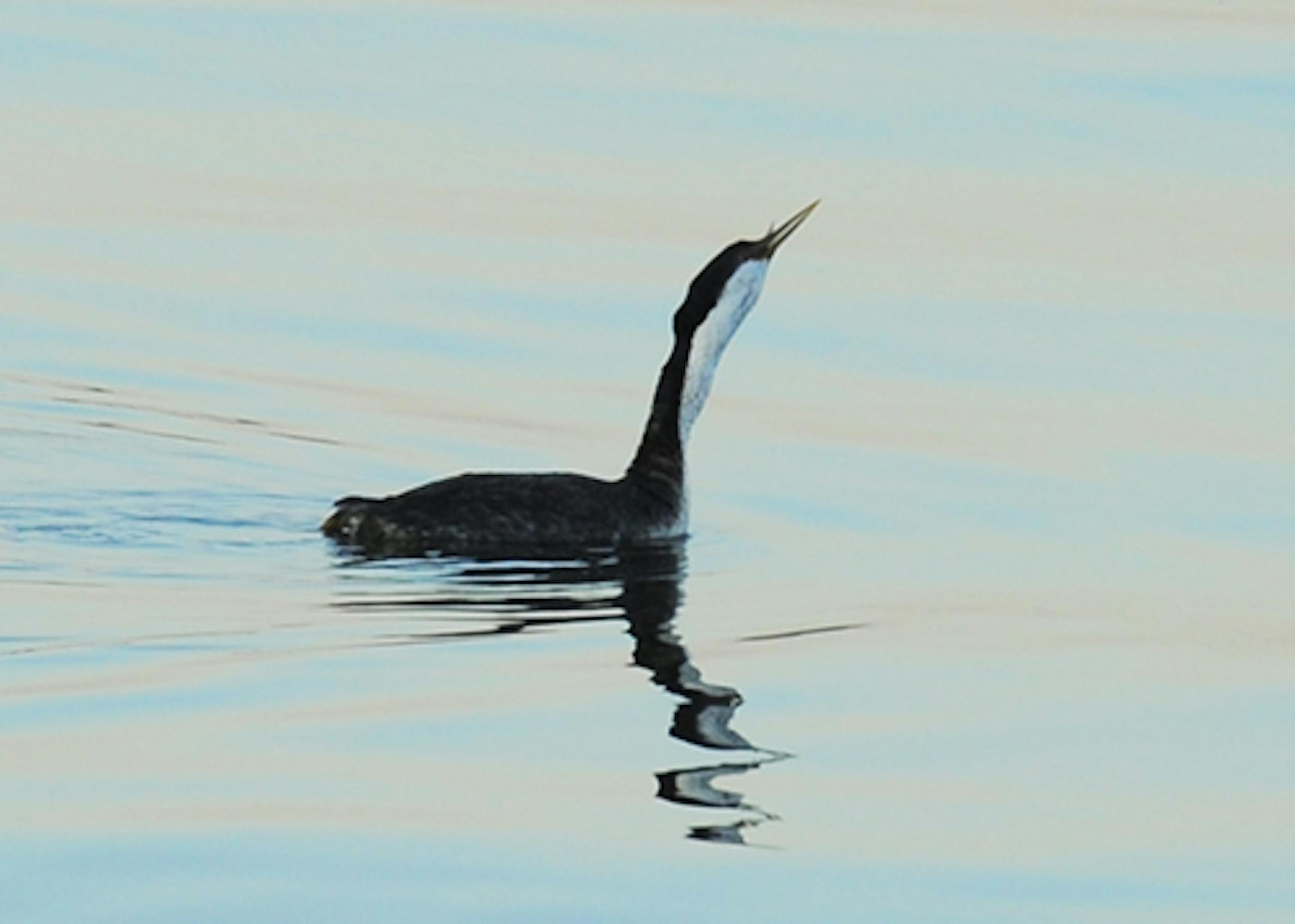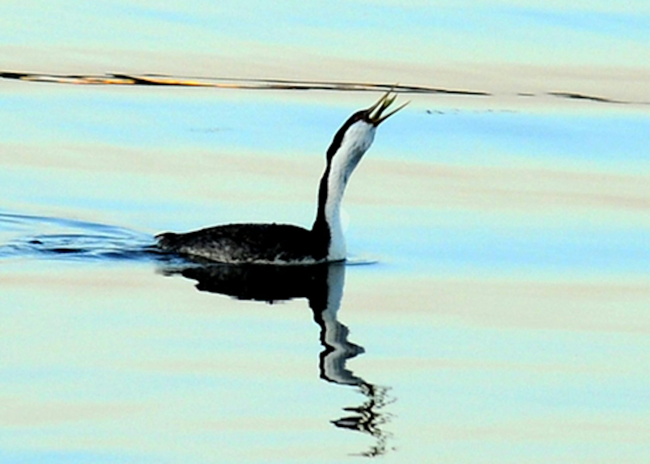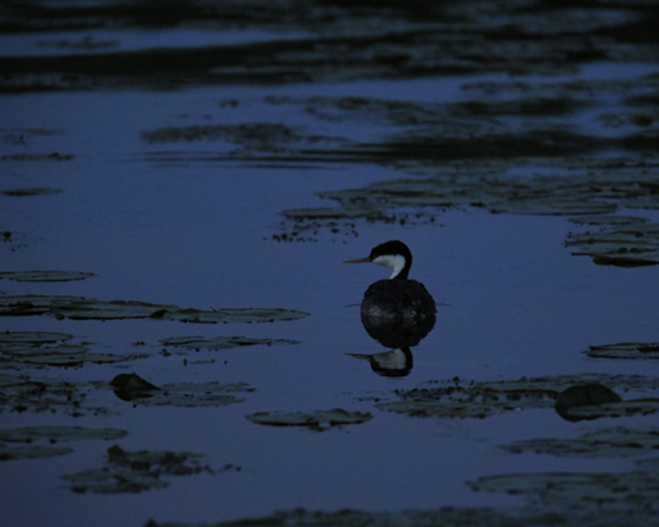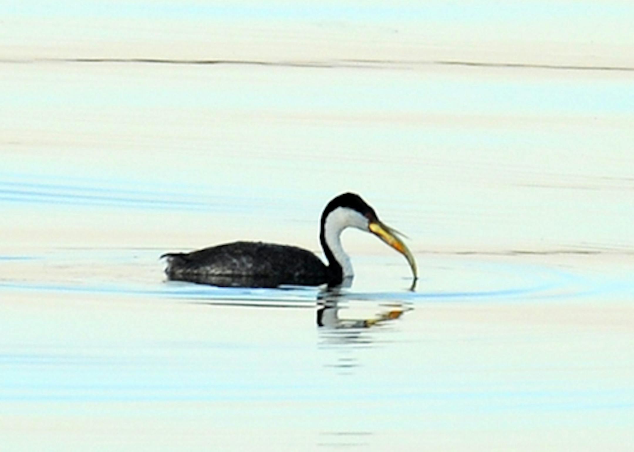 Twice on Saturday and again Sunday morning I watched a Western Grebe off the southwestern shore of Lake Independence. The location is almost directly across the lake from Baker Park. Western Grebes are uncommon this far east in Minnesota, not often reported in Hennepin County. This bird was offshore about 200 yards Saturday morning. It was fishing very near the shore Saturday evening, at times no more than 20 feet from shore. Sunday morning it was in the southwestern bay again, perhaps 200 feet from shore. Saturday night I watched the bird catch a sizable perch, big enough to require some effort and time to swallow. Here is a sequence, along with a shot after the sun had set. The large moon Saturday night was nicely reflected in the lake. Standing on the a bridge at that site I waited for the grebe to swim near or into that reflection. That would have been a cool photo. The bird settled down for the night, however, about 30 feet from my dream.